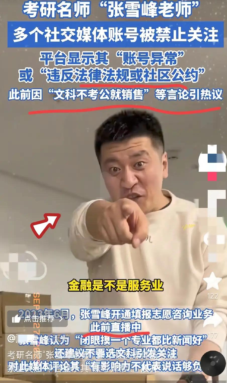 2600万粉丝一夜蒸发?张雪峰被央视点名禁言!到底发生了什么? 家人们,刷到这条消息我手都抖了——张雪峰,那个敢说真话、替普通家庭孩子撕开教育黑幕的张老师,居然被央视通报:因长期使用污言秽语,限期禁言、停播! 你敢信?就那个在直播间拍桌子骂某些高校就是割韭菜的人,就因为说话太直、语气太冲,直接被封了?多少寒门学子把他当灯塔,结果现在连声音都被掐了! 说实话,我气得睡不着。不是为他骂人辩护,但比起那些满嘴为你好、实则收钱推天坑专业的专家,张雪峰至少敢把真相摔在你脸上!他说的难听,可句句戳中教育焦虑的痛点。这年头,说真话反而成了污言秽语? 或许,真正该反思的不是他的措辞,而是——为什么我们宁愿听温吞水式的谎言,也不愿接受一记响亮的耳光? 现在他沉默了,但问题还在。 你觉得:是张雪峰说得太过,还是这个世界容不下真话?评论区聊聊,别让声音就此消失。