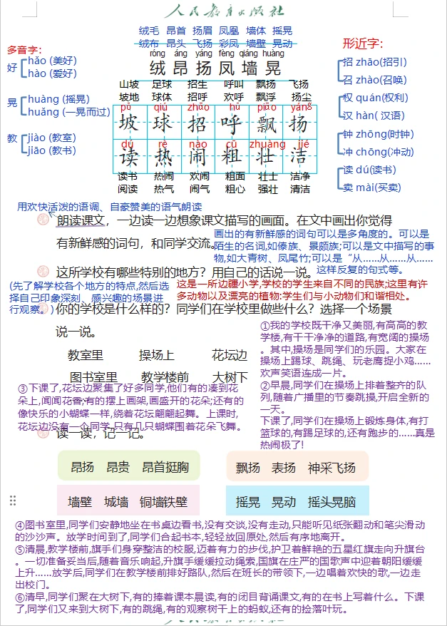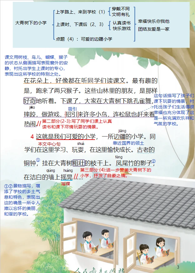 三上语文第1课《大青树下的小学》详细笔记