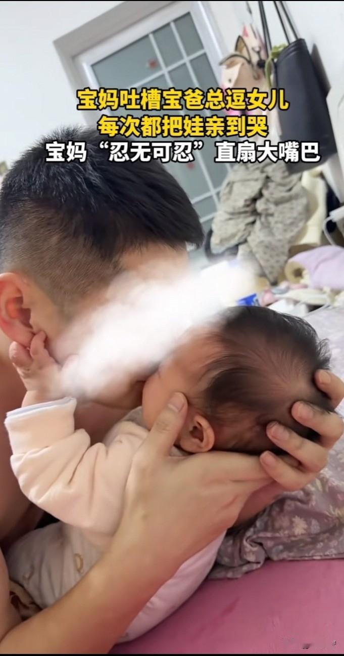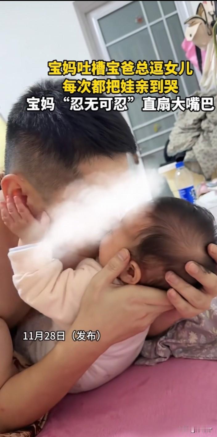 刷到一视频,一宝妈在网上吐槽自己老公,宝宝每次都好好的,可宝爸总是会对着女儿一顿狂亲,嘴对嘴的亲,宝宝每次都被亲的嚎啕大哭,小手不停的扒拉着宝爸,想要挣脱宝爸的怀抱,而宝爸对孩子的哭声与举动,却毫无反应。 宝妈实在忍无可忍,直接就是一个大嘴巴子扇过去,结果这一扇,男子直接发脾气叫宝妈“滚”!而视频到这里就结束了。 看到这里,真的忍不住想要跟着吐槽:婴儿皮肤多嫩啊、抵抗力又弱,频繁的亲吻 “尤其还是嘴对嘴”,很容易就传染细菌病毒,要是生病了,多折腾孩子啊! 宝贝亲嘴 宝爸抱娃