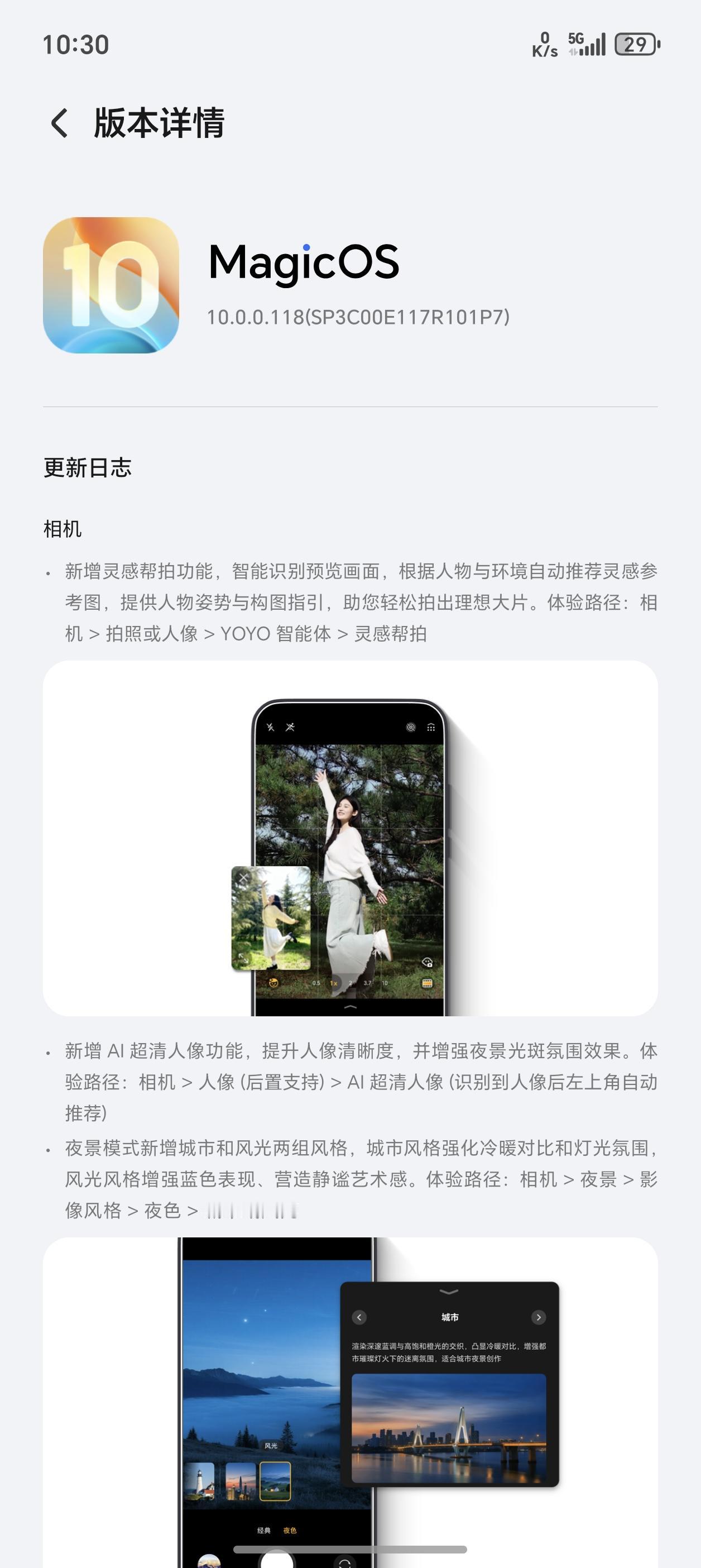 荣耀Magic8系118版本来了,新增了灵感帮拍、AI超清人像、夜景模式新增城市