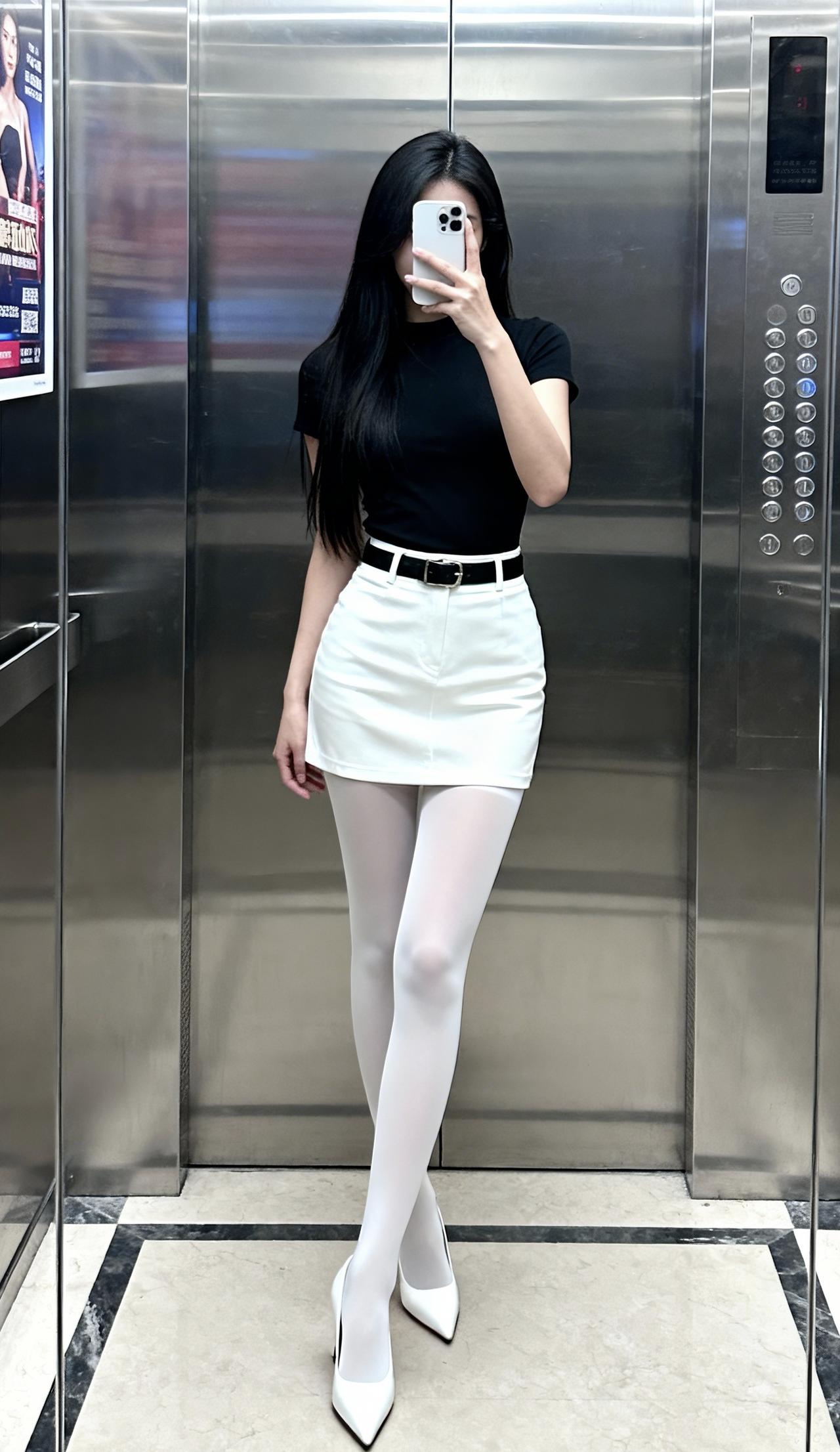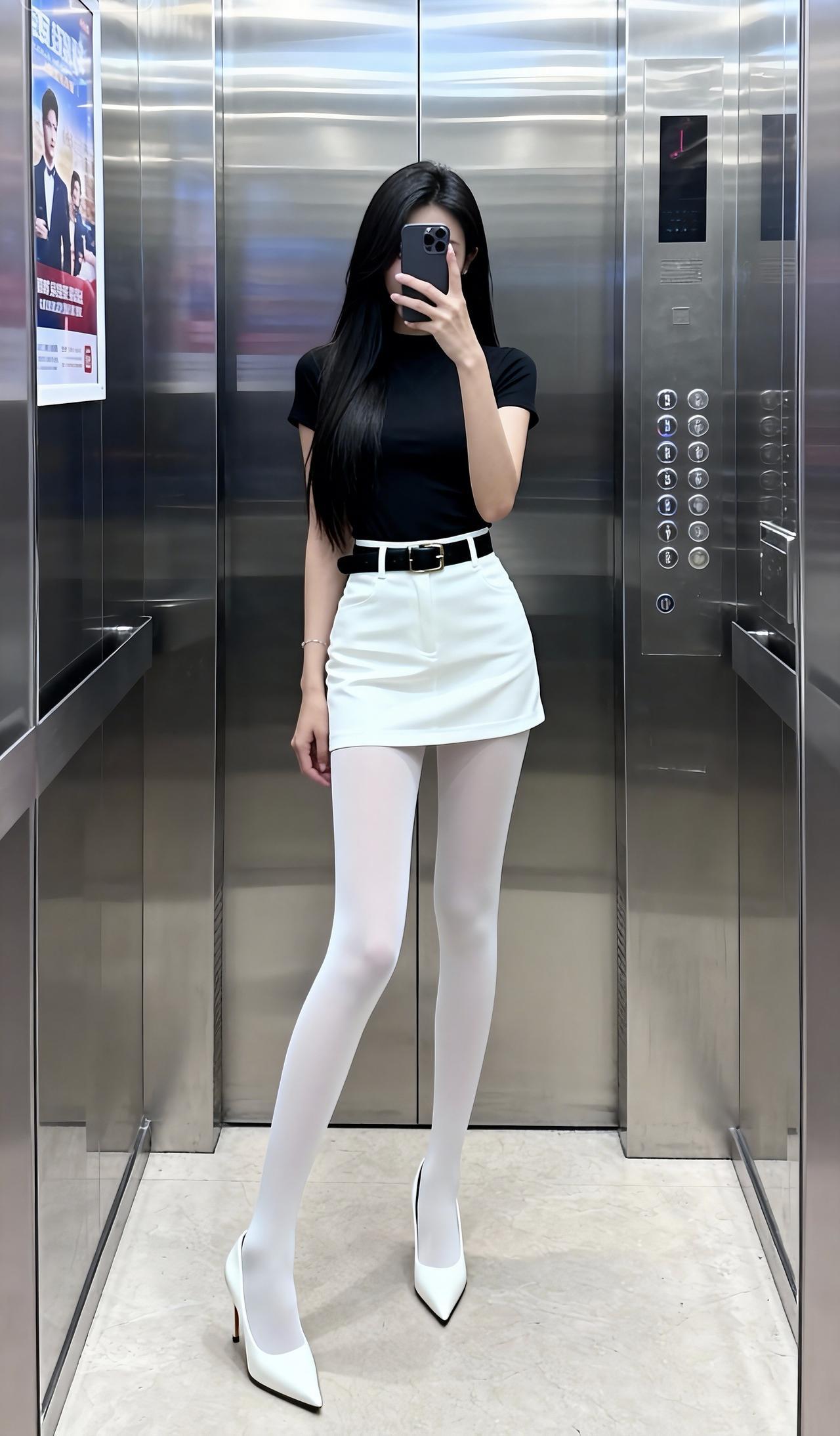 白丝真好看!电梯拍照 大长腿 白丝 穿搭日常分享