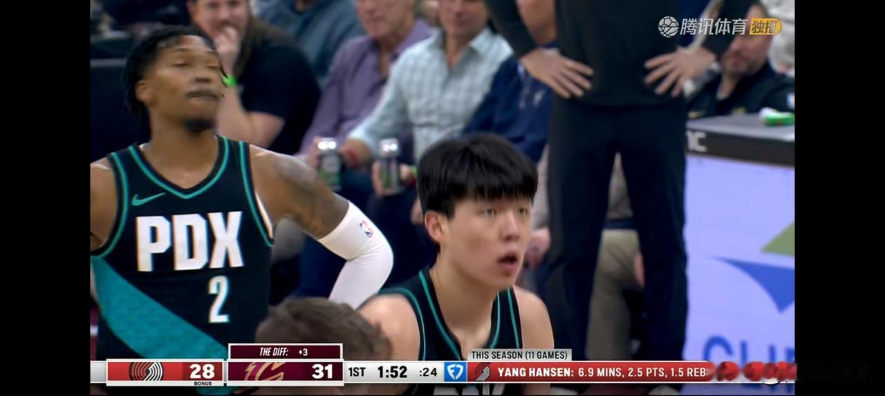 开拓者终于学会使用杨翰森!开拓者客场122比110战胜骑士! 杨翰森单手抓下篮板
