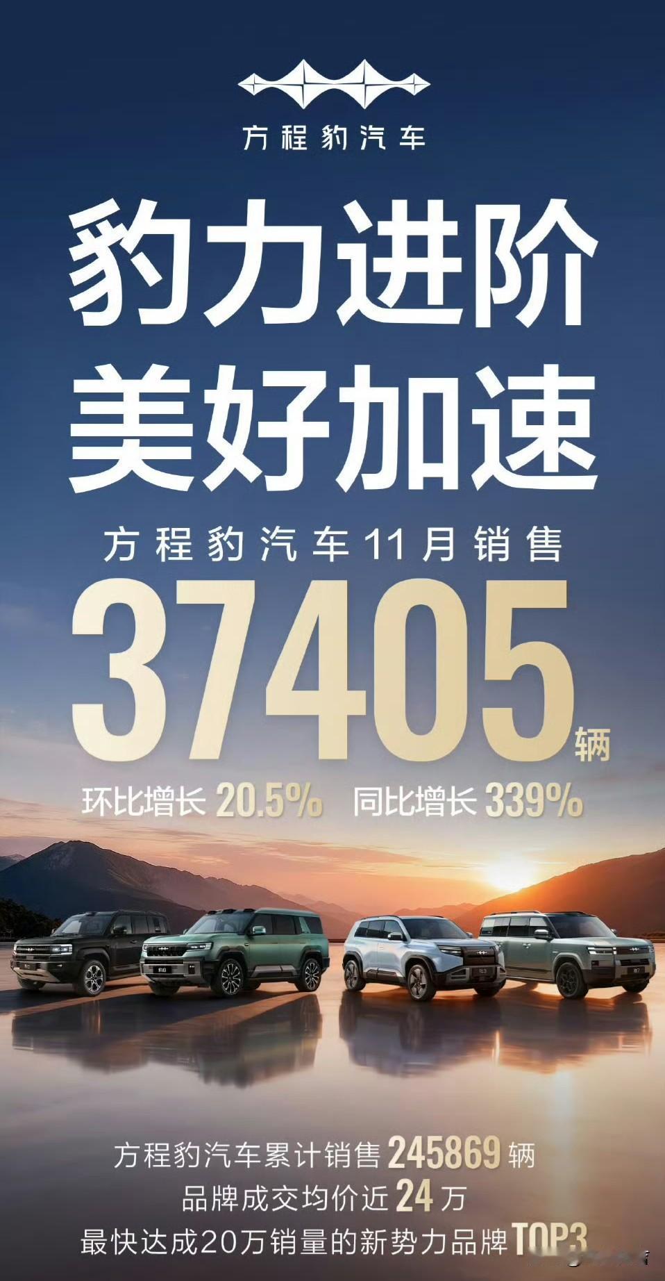 方程豹品牌是比亚迪剩下的个性化品牌,十一月销量37405辆,比一众新势力品牌总销