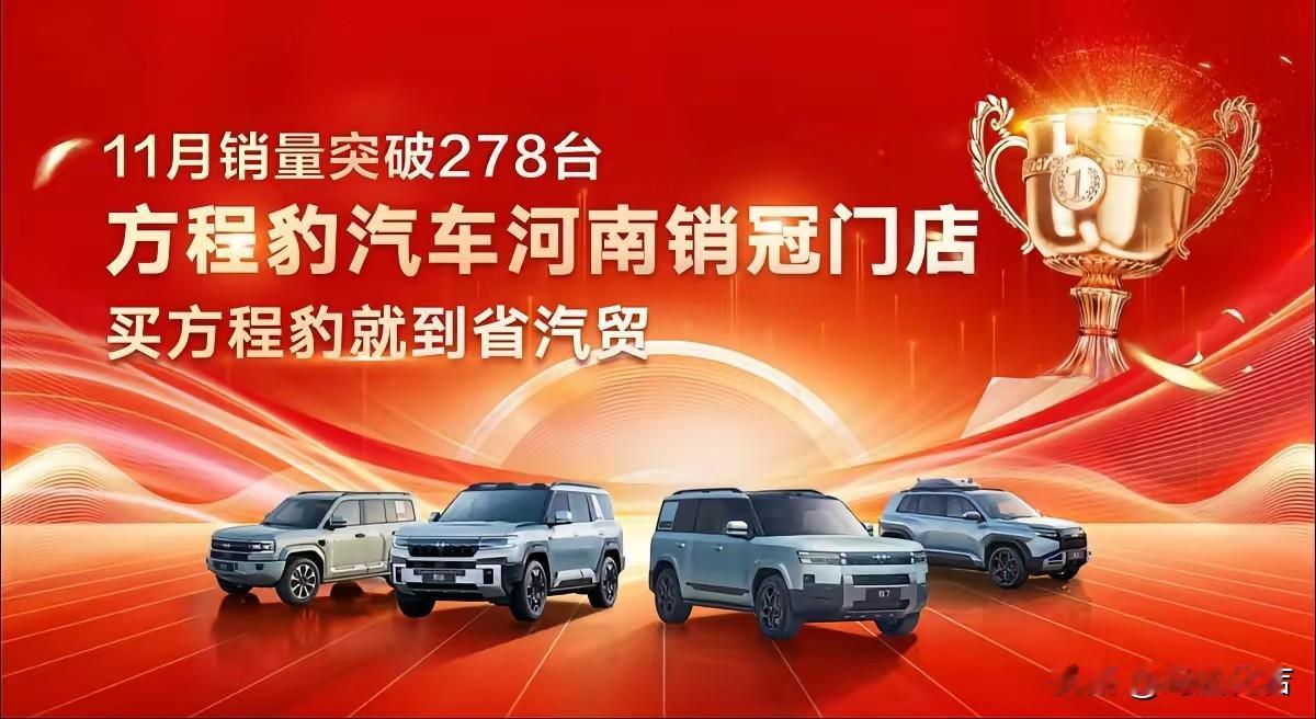方程豹品牌是比亚迪剩下的个性化品牌,十一月销量37405辆,比一众新势力品牌总销量还要多。方程豹钛7太火爆了,11月销量24019辆。钛7的火爆程度让部分4S店成了销冠,河南销售门店真给力,单月销售278台车,每天交付9台车。均价20万的方程豹销量也算起来了。小甜甜甜总功不可没呀。 方程豹钛7 方程豹品牌