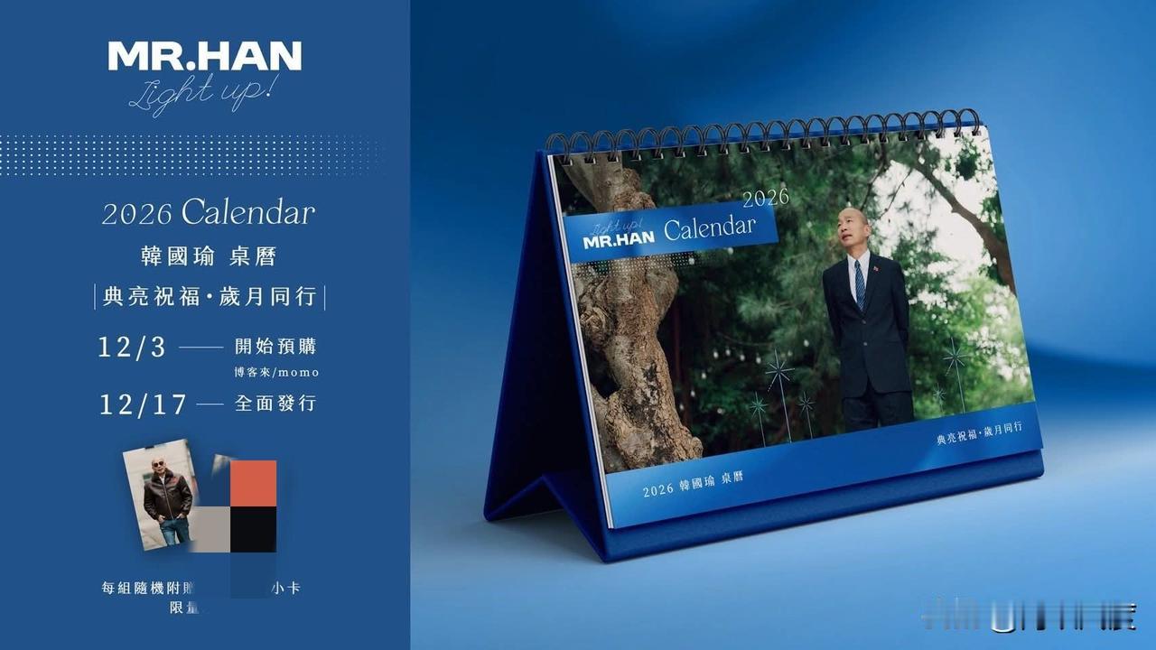韩国瑜脸书发布年度桌历,1时内获超1.5万赞,酷酷造型受追捧。 韩国瑜今天在脸书上以典亮慈善基金会的名义发布“典亮祝福,岁月同行”年度桌历,并接受预购。 韩国瑜发文表示:人生旅途上有人同行是福气,我時常这样想,也时常这样感謝。也因为你们的陪伴同行,我一路走來,始終觉得滿心溫暖。 他强调,希望这本《典亮祝福,岁月同行》的桌历在未來365天里,帶着对彼此的溫馨祝福、在暖心岁月里互相陪伴。 韩国瑜还在桌历里随机附上100张亲笔签名的卡片。 图文发布后1时即获得1.5万个赞,网友纷纷留言:“帅气又做公益,赞!”、“韩市长、韩院长、韩总,我们一直都在!” 也有网友留言表示,“做个活活泼泼的好学生,做个堂堂正正的中国人!”有网友更直接喊话:“当仁不让,非你莫属!” 更有网友勉励韩国瑜与郑丽文好好合作,该网友表示:“韩院长,好好加油、莫负大师期待、您与郑丽文、两人好好互助合作、共创台湾美好的未來、因为无常、所以改变、改善的空间很大,扭转乾坤、再造台湾,就看您二人如何领导大家了!” 1小时即获1.5万赞,凸显韩国瑜强大的声量和实力,郑丽文讲的对,2028谁是太阳确在未定之天! 敬请评论点赞关注@海峡风度 [作揖]