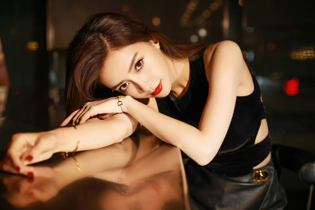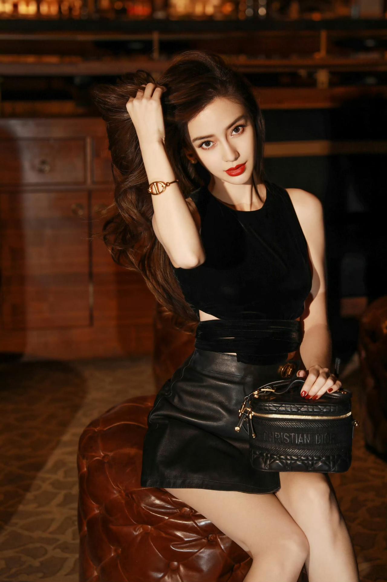 优雅酒吧之夜,红唇与黑裙的完美搭配🍷👠杨颖!!!