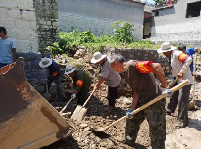 党员带领群众通过义务劳动修复被洪水损坏的大堰