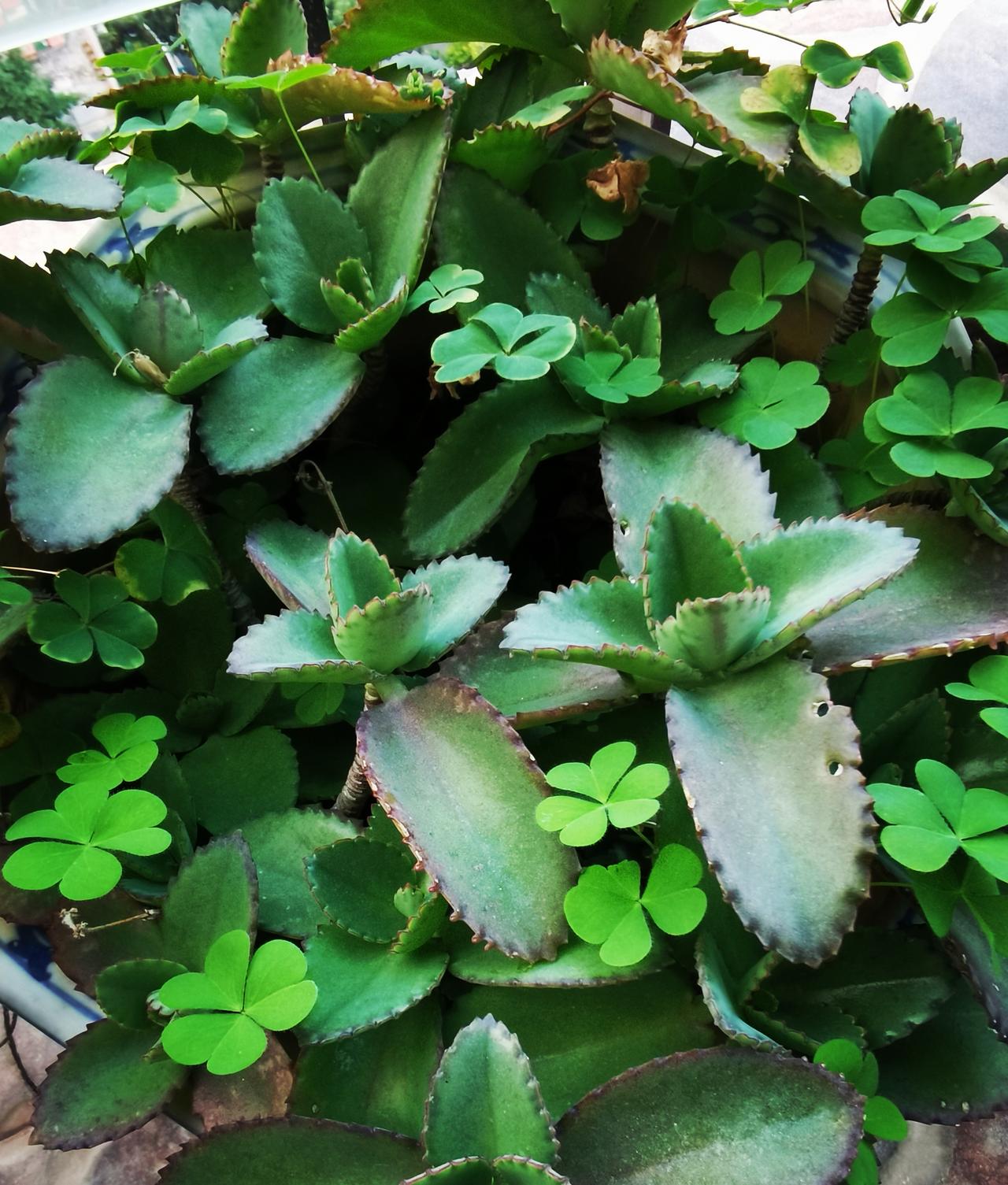 缘份天注定啊! 这种植物原来叫不死鸟。 它的家乡在南美洲墨西哥。 不知道什么时候,什么风又或是什么鸟把它带来撒在我家花盆里。 我十天半个月不在家,它却兀自茂盛地长着。 一年又一年。 我舍不得丢掉,只要回家我就给它浇水。
