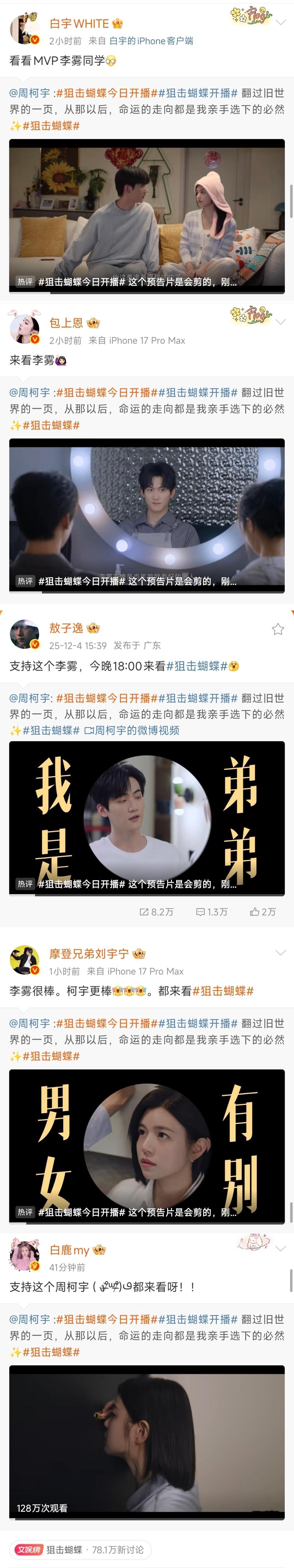 狙击蝴蝶打call打到破圈陈妍希周柯宇这娱乐圈人缘还是太权威了,新剧《狙击蝴蝶》开播把半个娱乐圈的人都摇来了这波打call直接从娱乐圈到电竞圈,已经被众人的打call刷屏了,看着大家这么卖力推荐,连我这个路人都有点好奇了,年下弟弟配干练姐姐,从资助关系到双向救赎,今晚必须点开审判一下!