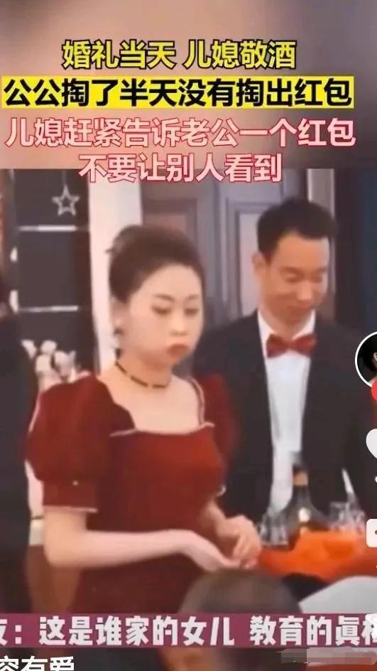 婚礼敬酒名场面爆火!公公掏红包慌了神,新娘一个举动圈粉无数,网友:这媳妇娶到赚翻了 婚礼上的突发状况,最能看清一个人的情商与格局。 近日,一段婚礼敬酒的视频在网络刷屏,新娘的临场反应让无数网友直呼“太懂事”“娶到就是福气”!画面里,新郎新娘正端着酒杯向公公敬茶,按照习俗,长辈此时会送上红包表达祝福。可让人没想到的是,公公在兜里翻来覆去,手忙脚乱半天,始终没能掏出准备好的红包,脸上渐渐露出尴尬的神色,周围宾客的目光也悄悄聚焦过来。 就在这略显窘迫的瞬间,新娘敏锐地察觉到了公公的为难,没有丝毫犹豫,立刻凑近新郎耳边小声叮嘱:“快拿个红包给爸,别让别人看见。”新郎心领神会,赶紧从自己兜里掏出一个红包,趁着众人不注意,悄悄塞到了父亲手里。接过红包的公公瞬间松了口气,顺利完成了敬酒环节,整场婚礼的氛围也丝毫没有受到影响。 这段视频一经发出,评论区瞬间被网友的夸赞淹没:“这新娘也太会来事了!既给足了公公面子,又化解了尴尬,情商拉满”“谁家的好姑娘啊,教养真的刻在骨子里,公婆以后肯定疼她”“细节见人品,关键时刻不矫情、不抱怨,这样的媳妇谁不爱”。 婚礼本就是众目睽睽之下的仪式,难免会有疏漏与意外。而新娘的做法,不仅体现了她的善良体贴,更藏着高情商的处事智慧——没有当众点破,没有面露不悦,而是用最低调的方式化解危机,既维护了长辈的尊严,也让婚礼得以顺利进行。 都说婚姻里的幸福,藏在细节里。这样通情达理、懂得换位思考的新娘,无疑是一个家庭的福气。毕竟,比起一时的风光,长久的和睦才是婚姻最好的模样。 你被这位新娘的举动打动了吗?评论区聊聊你的看法~
