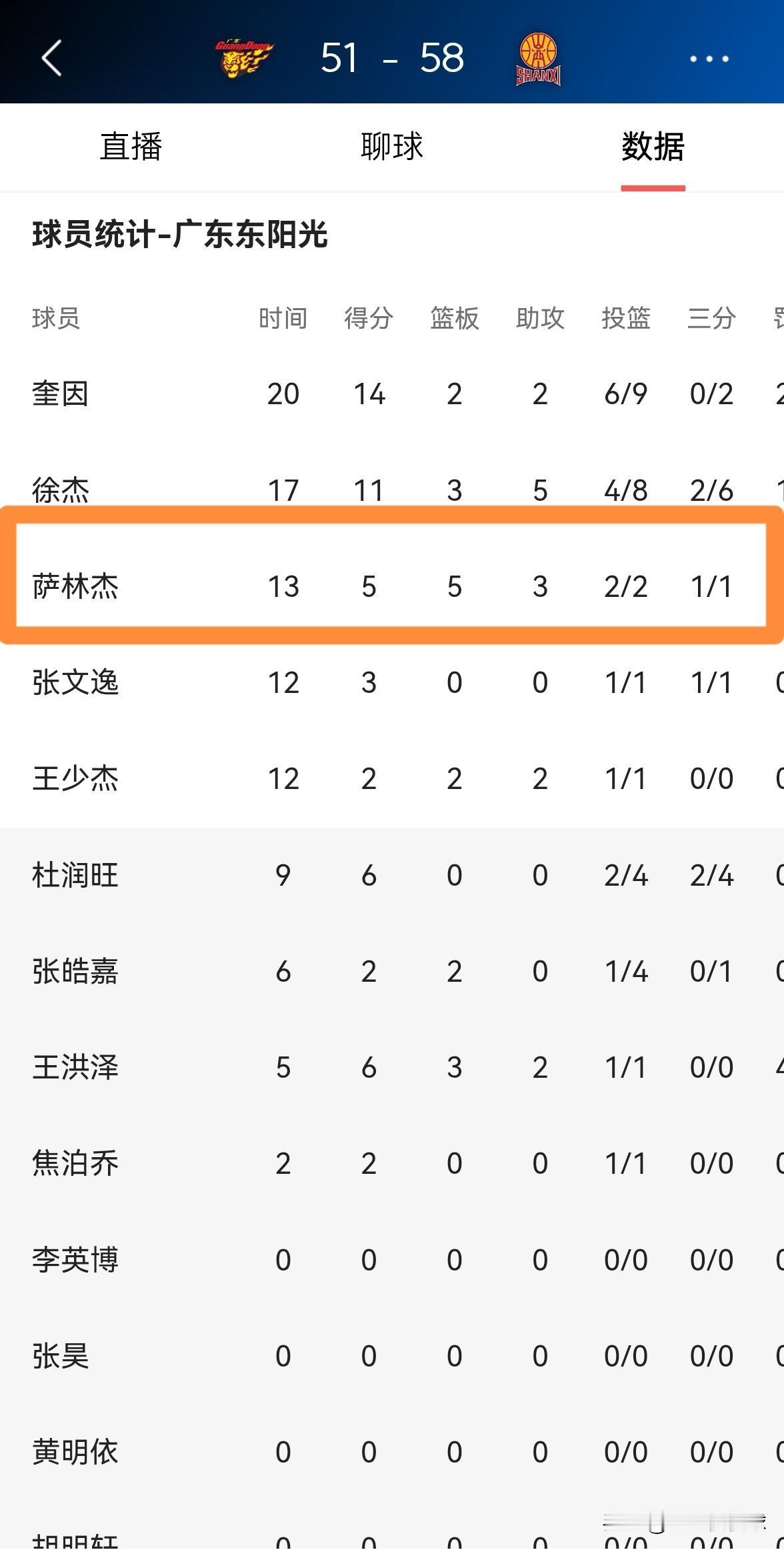 广东东阳光外援萨林杰真是太全能了!在今天进行的广东东阳光和山西汾酒的上半场比赛中