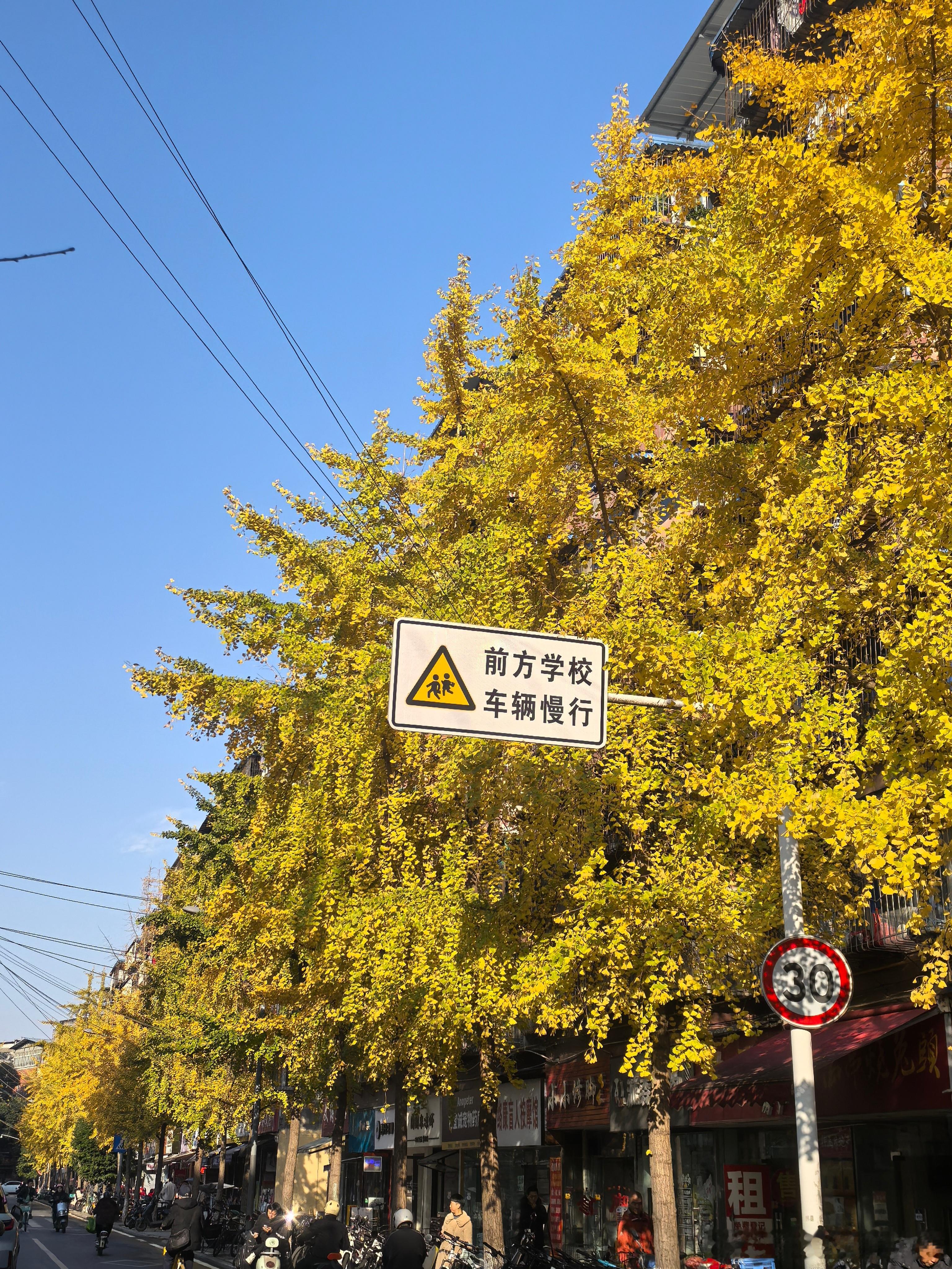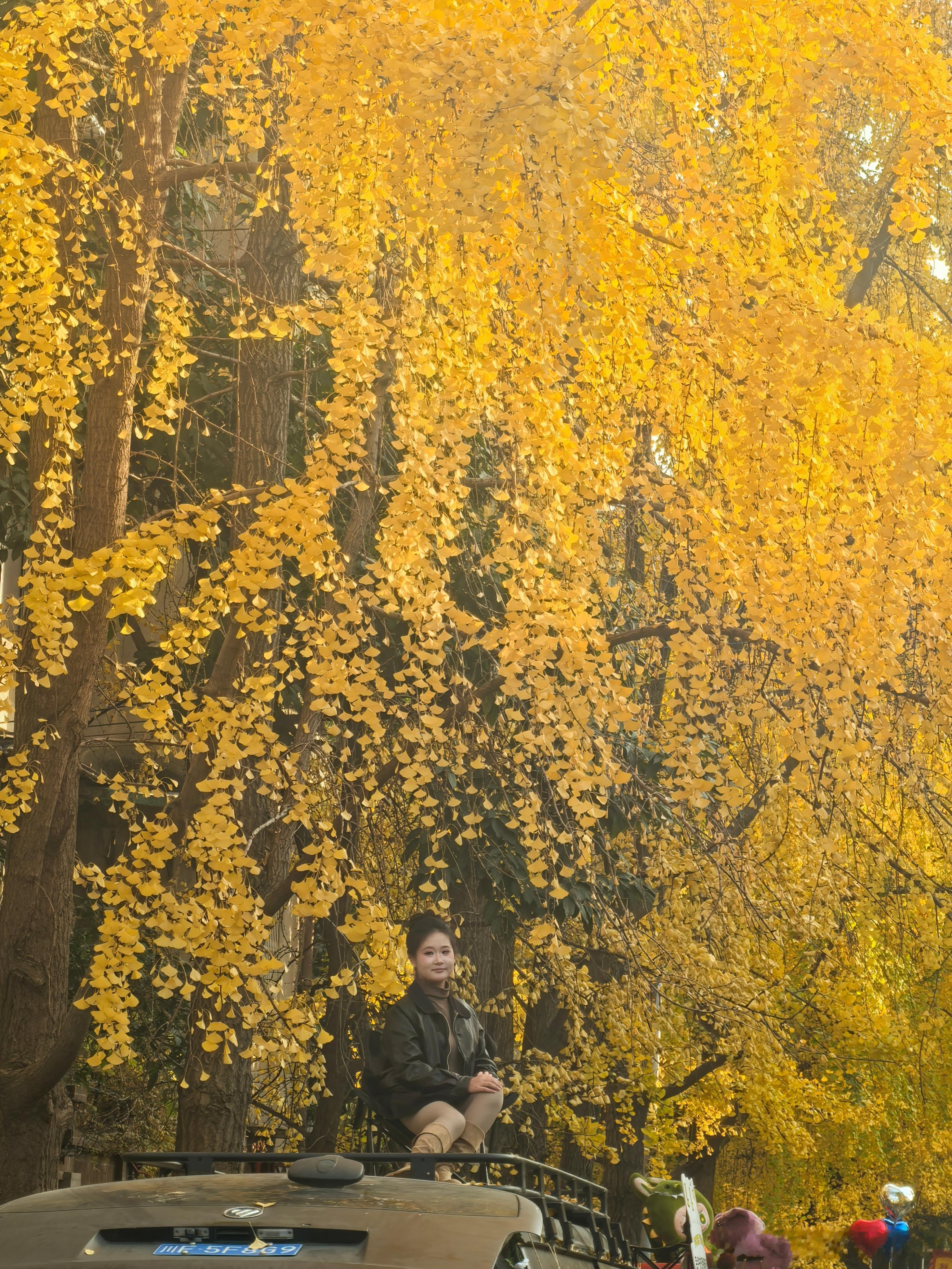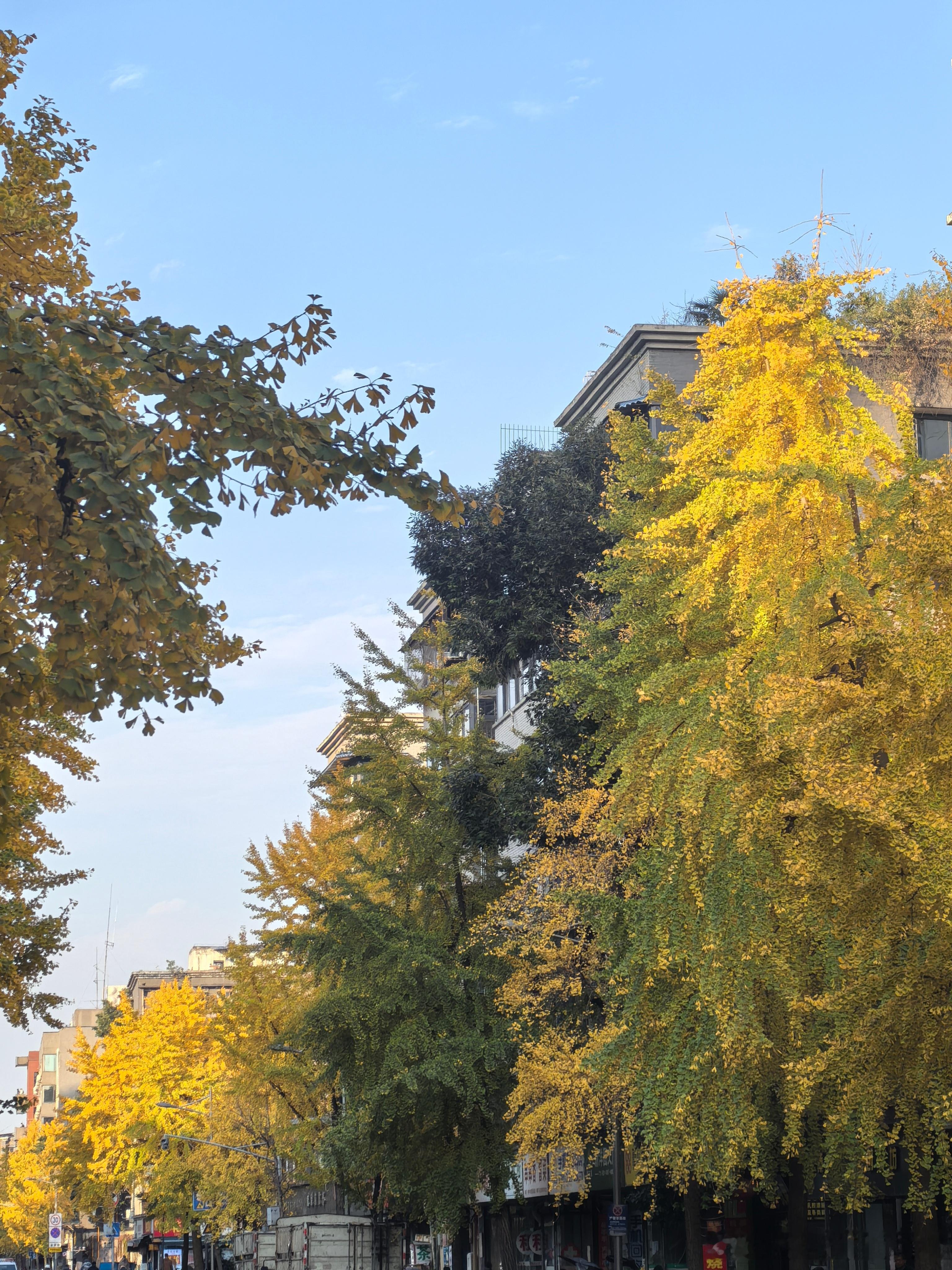 你就说,是不是很黄?你就说,是不是我一来成都就出太阳?去年去过的银杏路,今年似乎