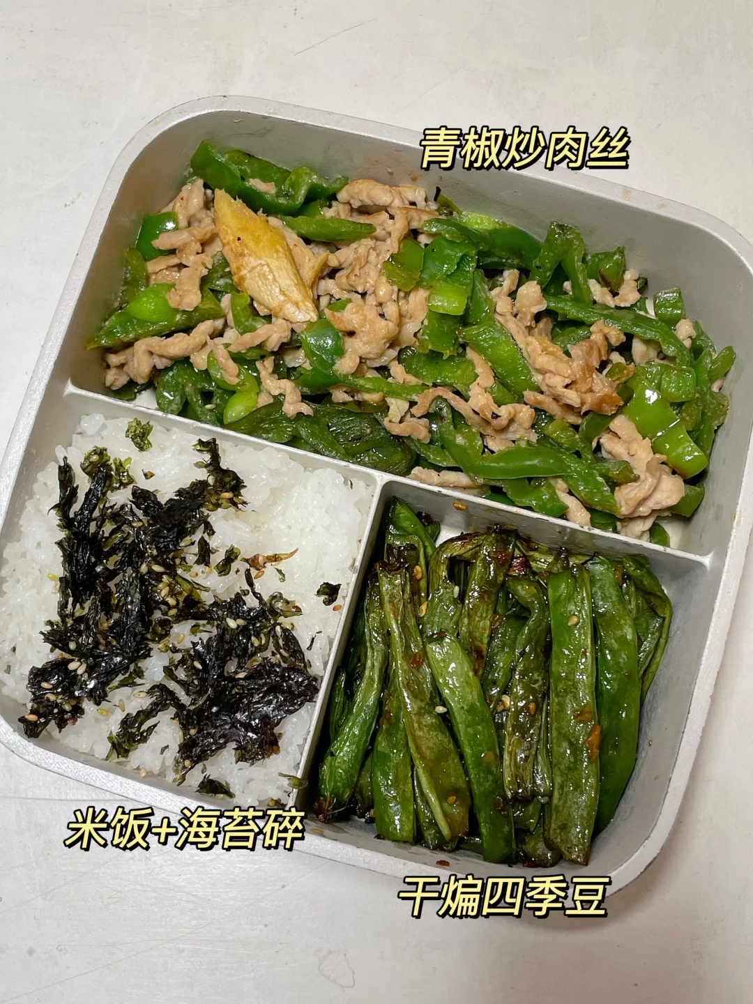 📍米饭+青椒肉丝+干煸四季豆