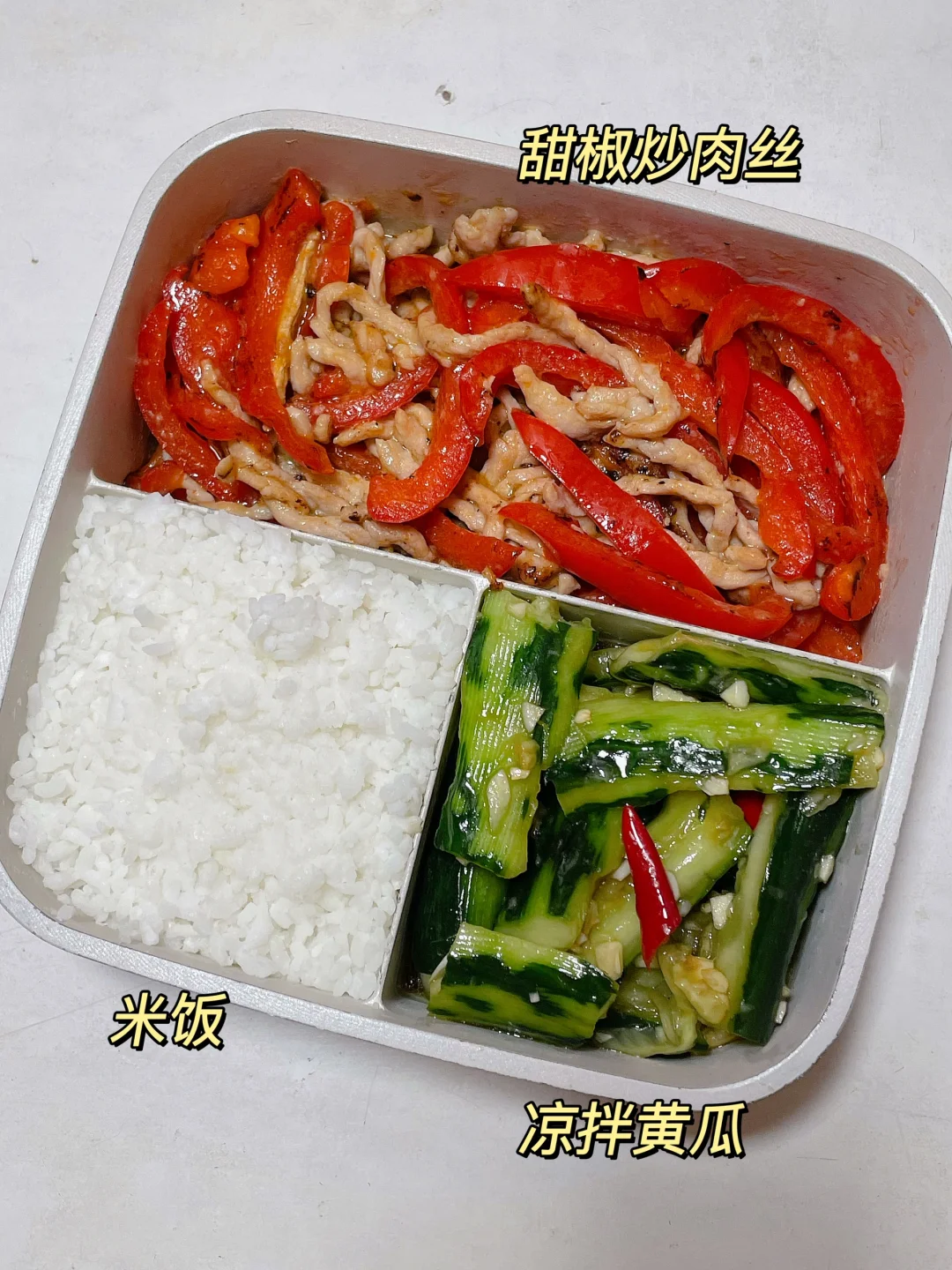 📍米饭+甜椒炒肉丝+凉拌黄瓜