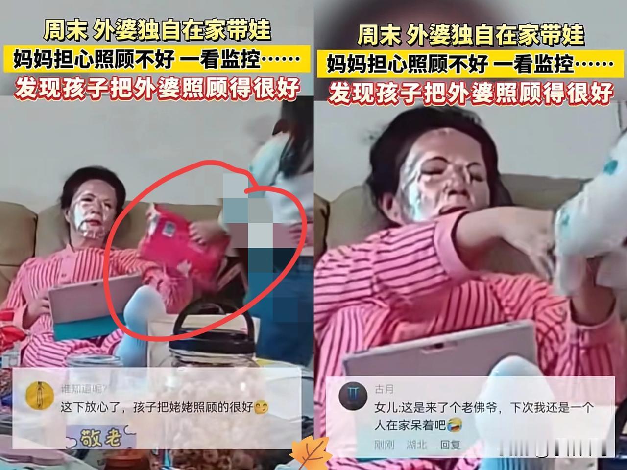北京一名女子由于周末要上班,于是便把孩子送到娘家去带让孩子的外婆带,由于孩子平时特别调皮,生怕老妈应付不来,赶紧点开家里监控,结果一看直接笑出鹅叫! 监控里的外婆也太会了!敷着美美的面膜,瘫在沙发上葛优躺,一边咔哧咔哧炫零食,一边盯着电视看得津津有味,活脱脱一个“摆烂式外婆”! 再看旁边的娃,简直像被按下了乖巧开关——平时上蹿下跳、连哄带骗都不听,这会儿居然安安静静当起了小跟班,又是递薯片喂到外婆嘴边,又是端牛奶小心伺候,全程不吵不闹,乖得离谱! 网友说“你比娃懒,娃就被迫勤快”,这话听着搞笑,实则藏着带娃大智慧! 这哪是外婆懒,分明是摸透了娃的性子——不压制、不说教,用“示弱”让娃主动学会担当,比千遍万遍的“你要懂事”管用100倍! 比起那种全家围着娃转、把娃宠成“小皇帝”的带法,这种松弛感的相处反而更养人! 娃在照顾外婆的过程中学会了体谅,外婆也乐得轻松,双向奔赴的带娃模式,才是真的高明!