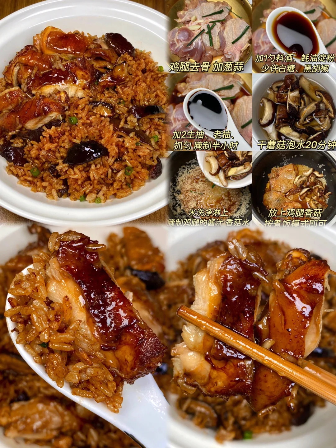想告诉全世界这个巨巨巨好吃!!!|||我妈焖了几十年的鸡腿焖饭,真的巨巨巨好吃! 鸡腿鲜肉入味,米饭吸饱了香菇和鸡腿的酱汁, 连炫好几碗~