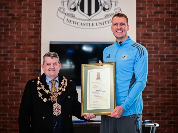 本周,布莱斯市市长戴维·斯温霍议员前往纽卡斯尔联队训练基地,为丹·伯恩颁发了这项殊荣——布莱斯市最高公民奖——以表彰他在联赛杯决赛中为纽卡斯尔联做出的卓越贡献。