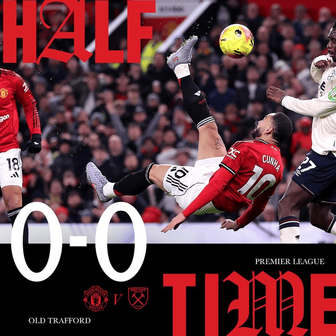 曼联0-0西汉姆联半场数据:射门9-5,射正2-1,绝对机会0-1