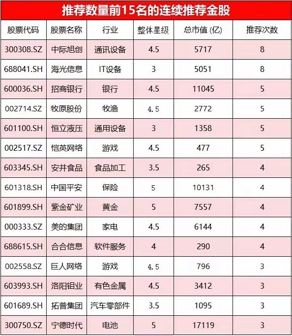 又一批牛股出炉了。有时间验证一下,对不对。 12月份机构推荐最多的金股。到12月
