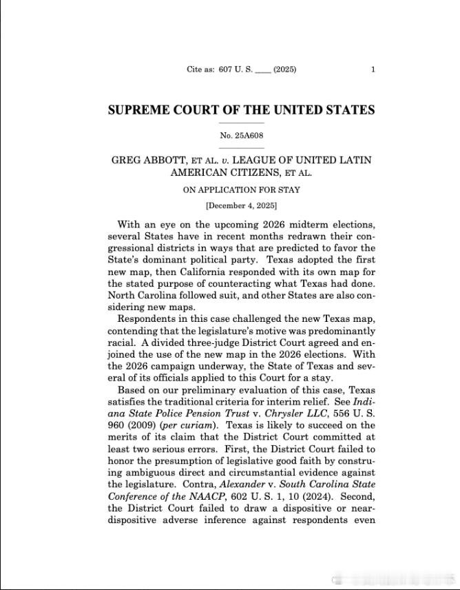 【黄金时代】重大胜利:最高法院以6比3的投票结果维持了德克萨斯州2026年国会选