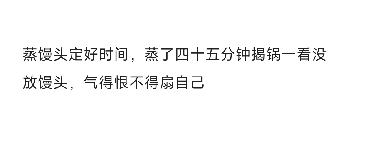 蒸馒头定好时间,蒸了四十五分钟,揭锅一看没放馒头,气得恨不得扇自己