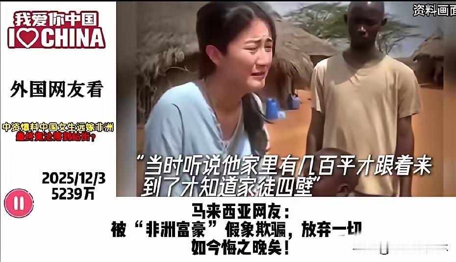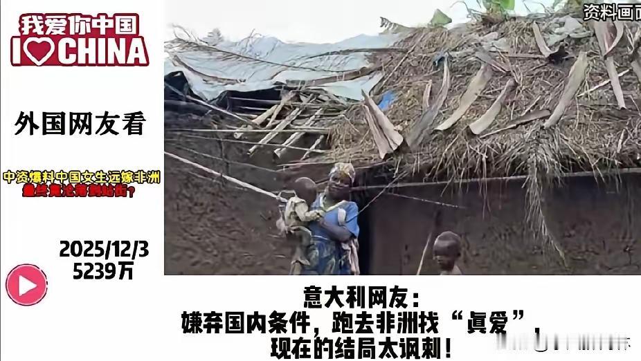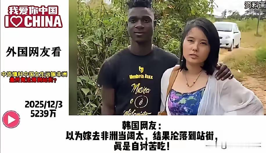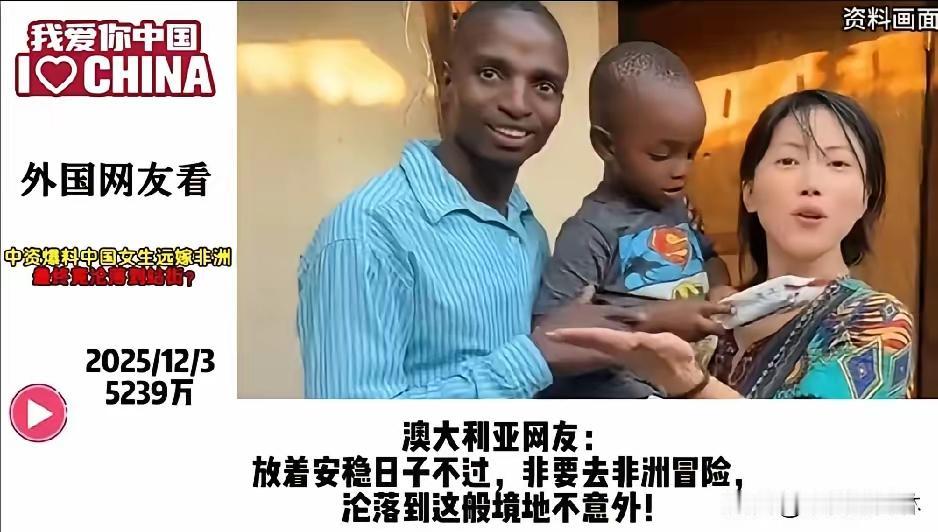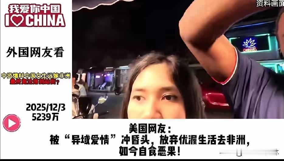 远嫁非洲的中国女生, 结局站街谋生, 这事火遍外网, 外国网友都惊掉了下巴,其实最该警醒的是我们自己人! 外网吵翻了天,有人不敢信那些英语流利、懂专业术语的姑娘,竟是当初为爱情远嫁的高材生,还有人吐槽非洲部分地区对女性的不尊重太离谱。 可这事根本不是“异国爱情”的浪漫事故,而是恋爱脑撞上现实的必然悲剧。这些姑娘当初被“别墅佣人”的谎话骗过去,到了地方才发现是铁皮屋,护照被收、遭遇家暴都是常事,甚至有的还成了丈夫的第二个妻子。 她们不是不想回国,而是早就和父母决裂,又舍不得孩子,只能被困在异乡。别再说这是个别案例,非洲工地上这种情况很普遍,这也不是种族问题,而是跨国婚姻前没看清对方的人品和当地的习俗法律。 爱情从来不分国界,但婚姻必须落地在现实里,盲目冲动的选择,终究要自己买单。 你觉得这些姑娘的遭遇该怪谁?如果是你,会为了爱情远嫁异国吗?
