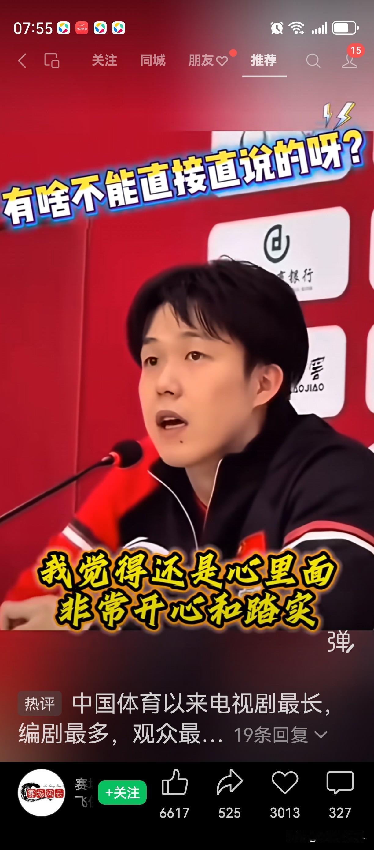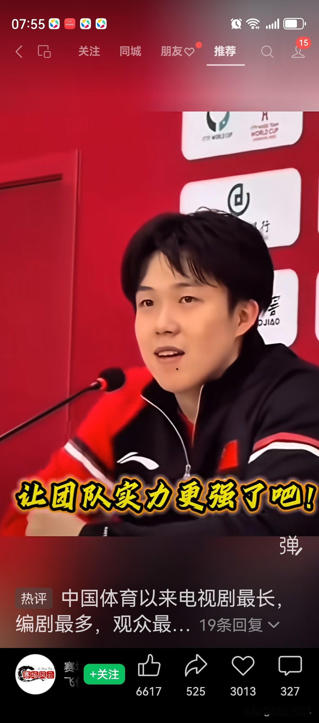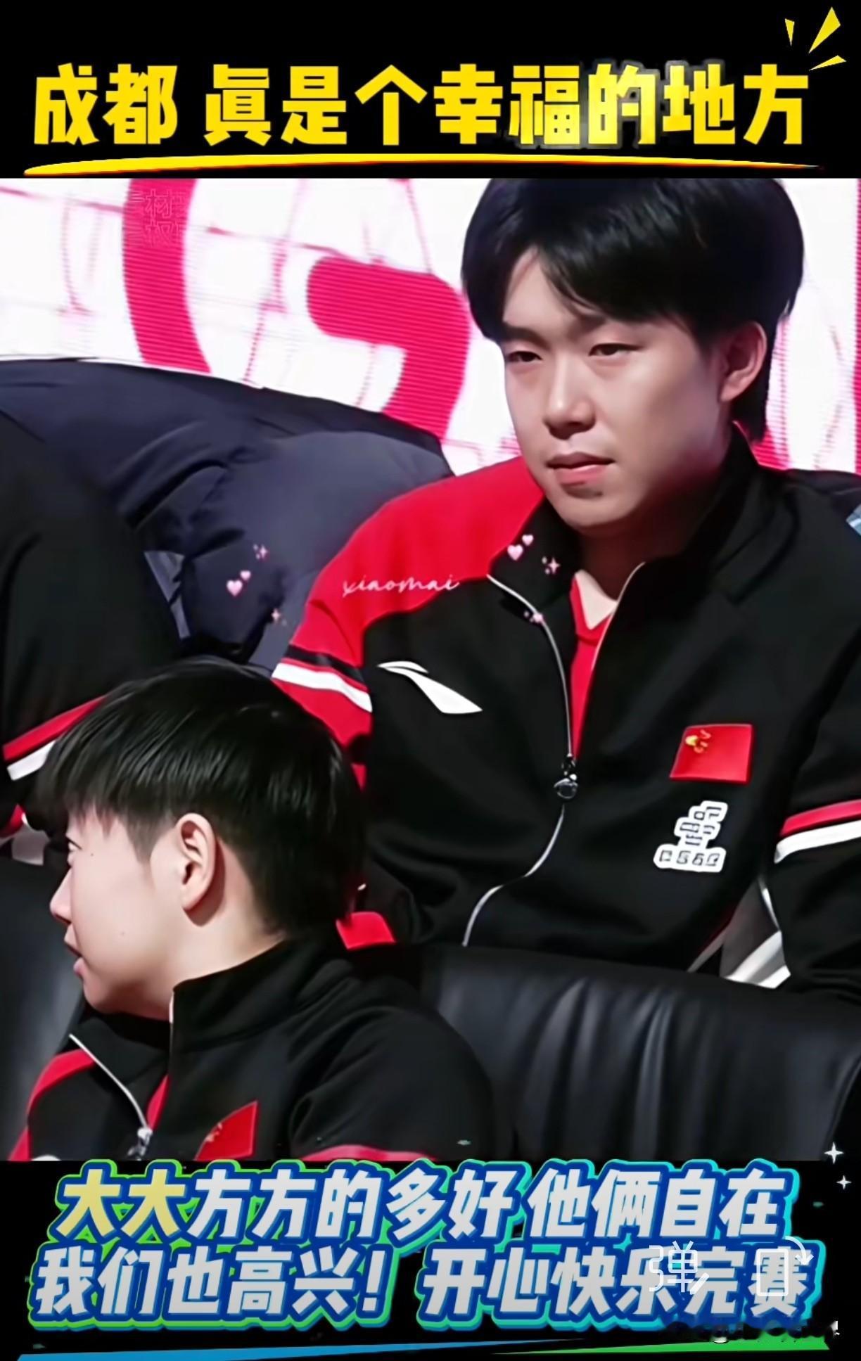 找到头哥这次成都混团比赛这么开心的原因了! 原来是有个女队队友在呀!难怪心里非常开心和踏实。自己也尽情发挥,让团队实力更强。 都说头哥又帅回来了!西装革履的时候是霸道总裁!淘气的时候是邻家的可爱男孩!赛场上如出鞘利剑,锋芒所向皆披靡! 瞧他和甜甜看小石头比赛那开心劲,看到精彩球,那激动溢于言表,真是为他们高兴。 和莎莎也不避嫌了,该说说,该笑笑,轻松开心。他们打球看他们打球。他们看打球我们看他们。 自从头头说中国乒乓球队还是那个乒乓球队”之后,男队更加紧紧地团结一心,太好了! 哈哈!国乒胜利我们开心,头哥莎莎快乐!我们更开心!