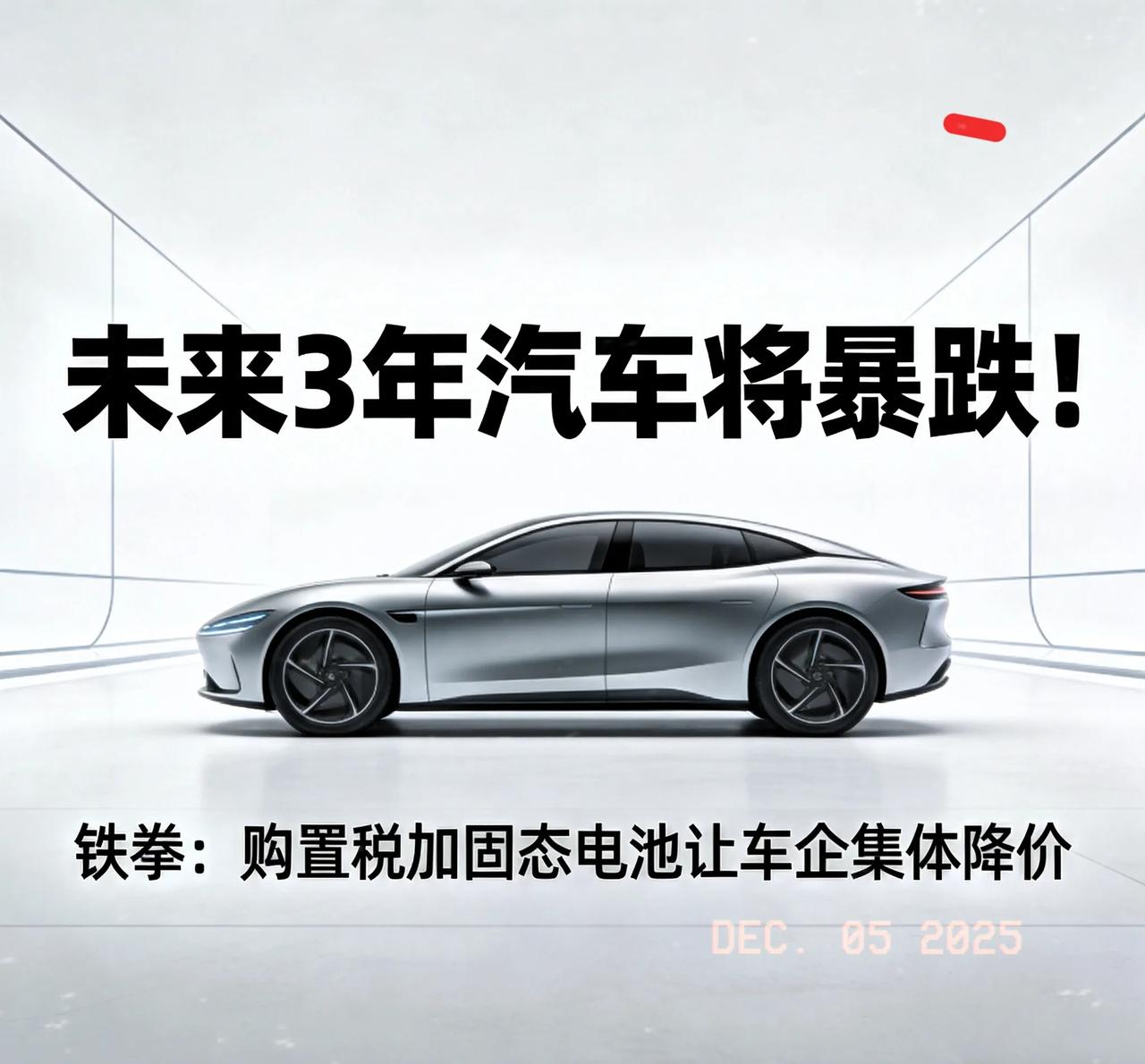 家人们!刚刷到说未来3年汽车要暴跌的消息,看完直接惊了——购置税调整加固态电池技