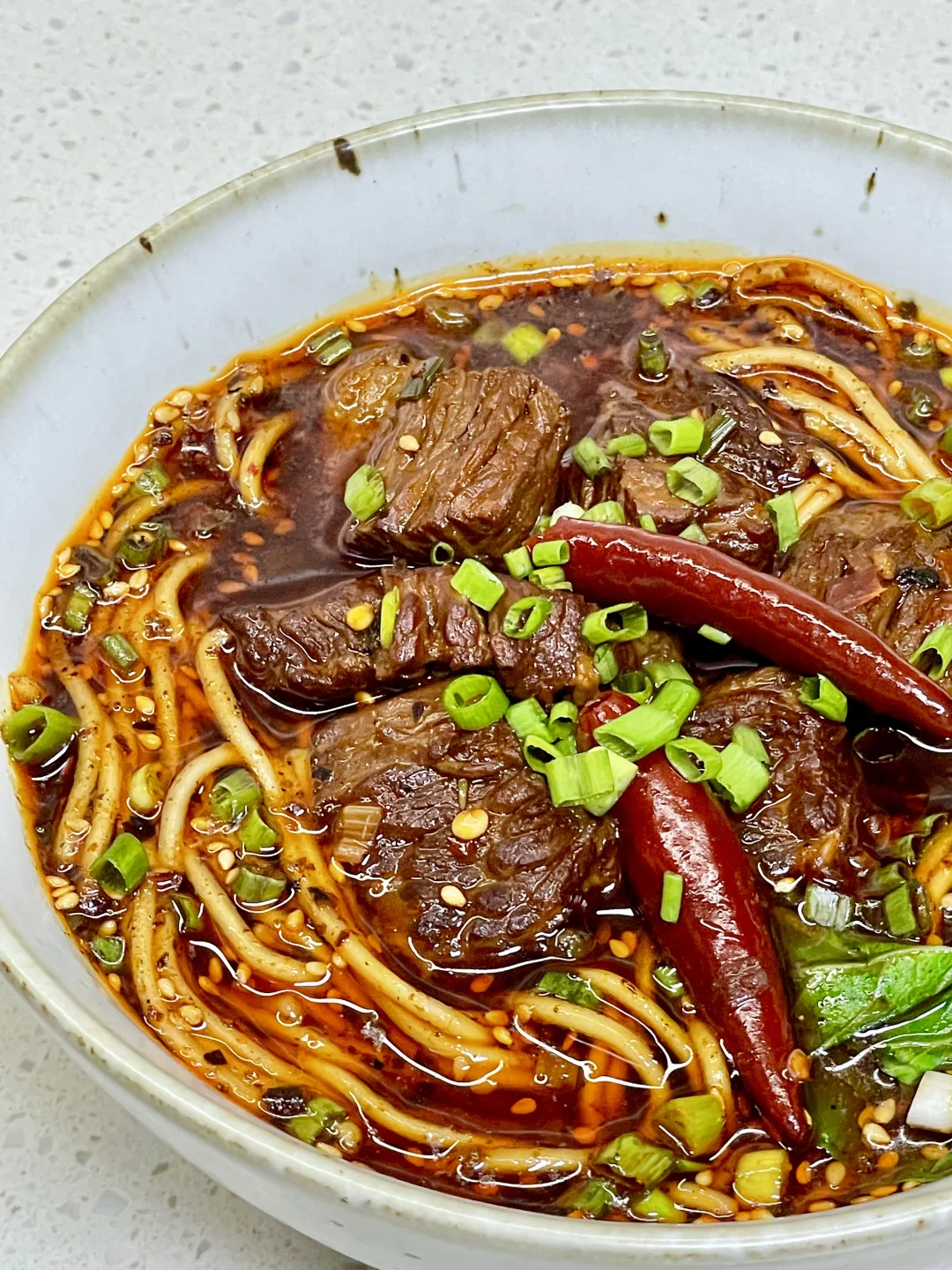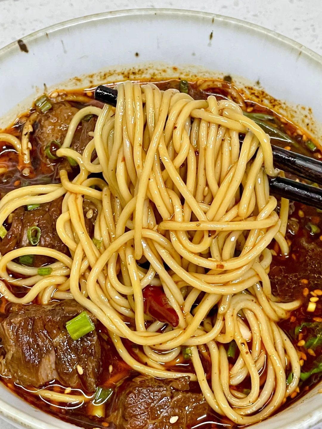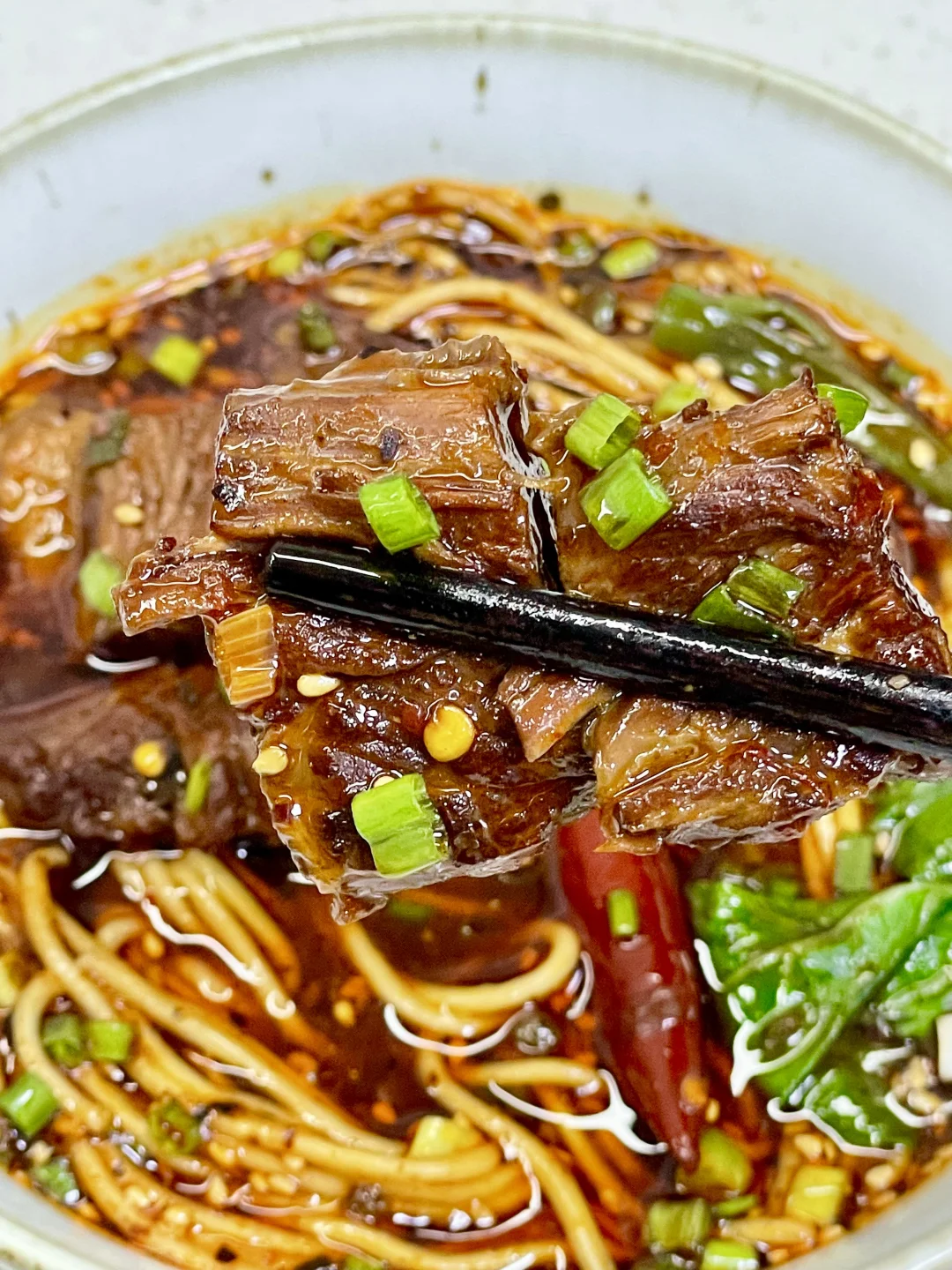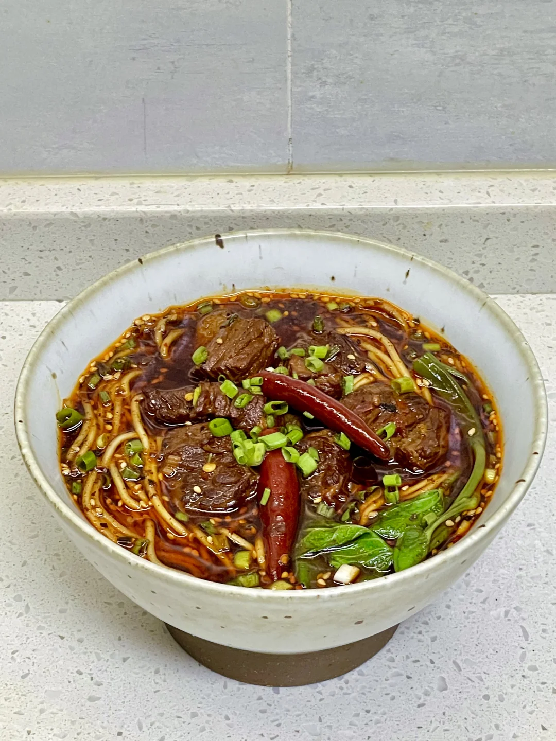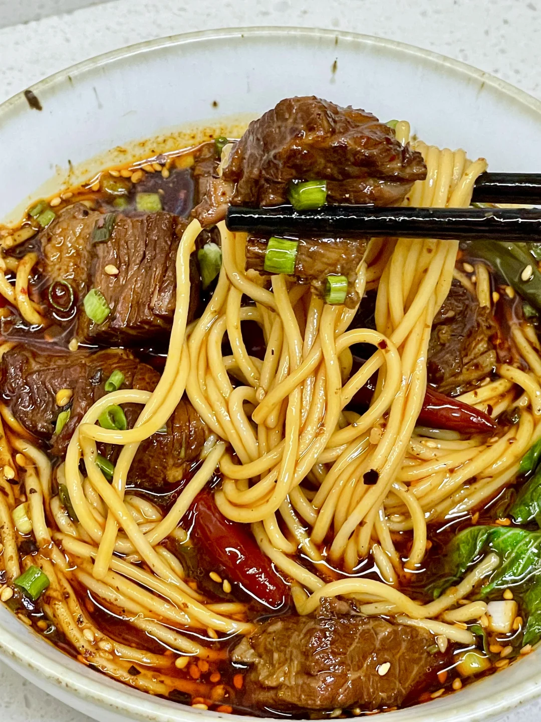 我做的红烧牛肉已经nextlevel了,加点泡椒更绝了,满屋都是肉香,家人直呼可以去开店啦!煮点面条,来个豪华红烧牛肉面,简直不要太满足[微笑R]