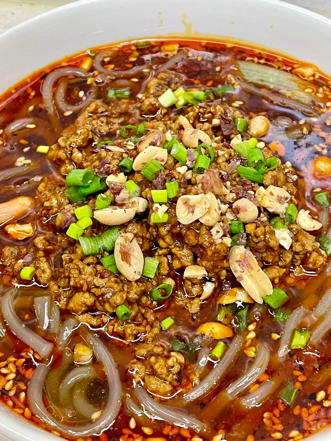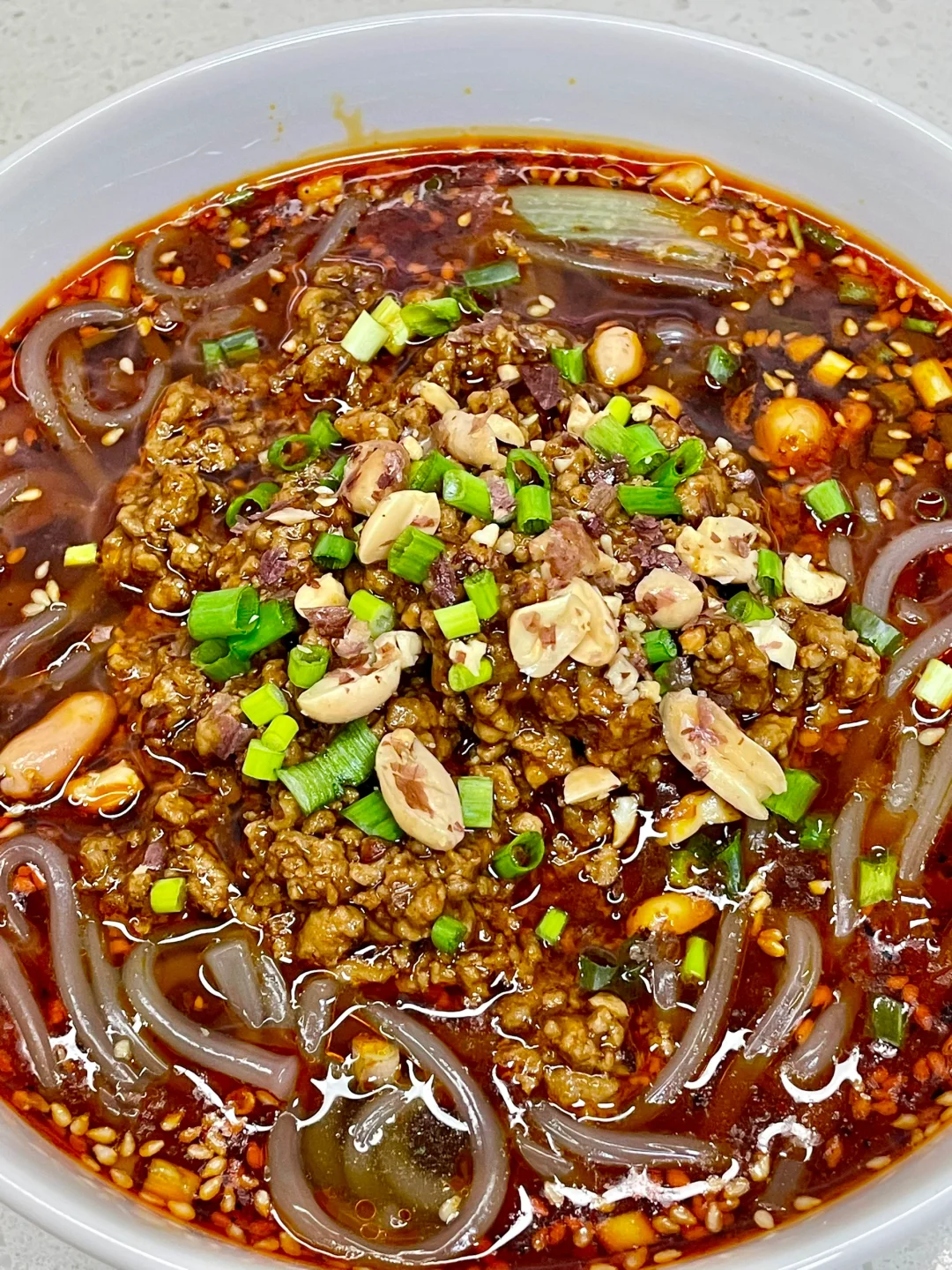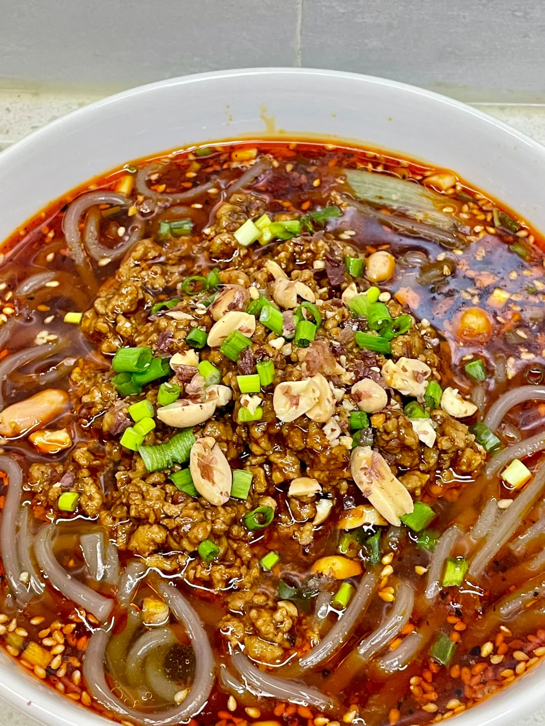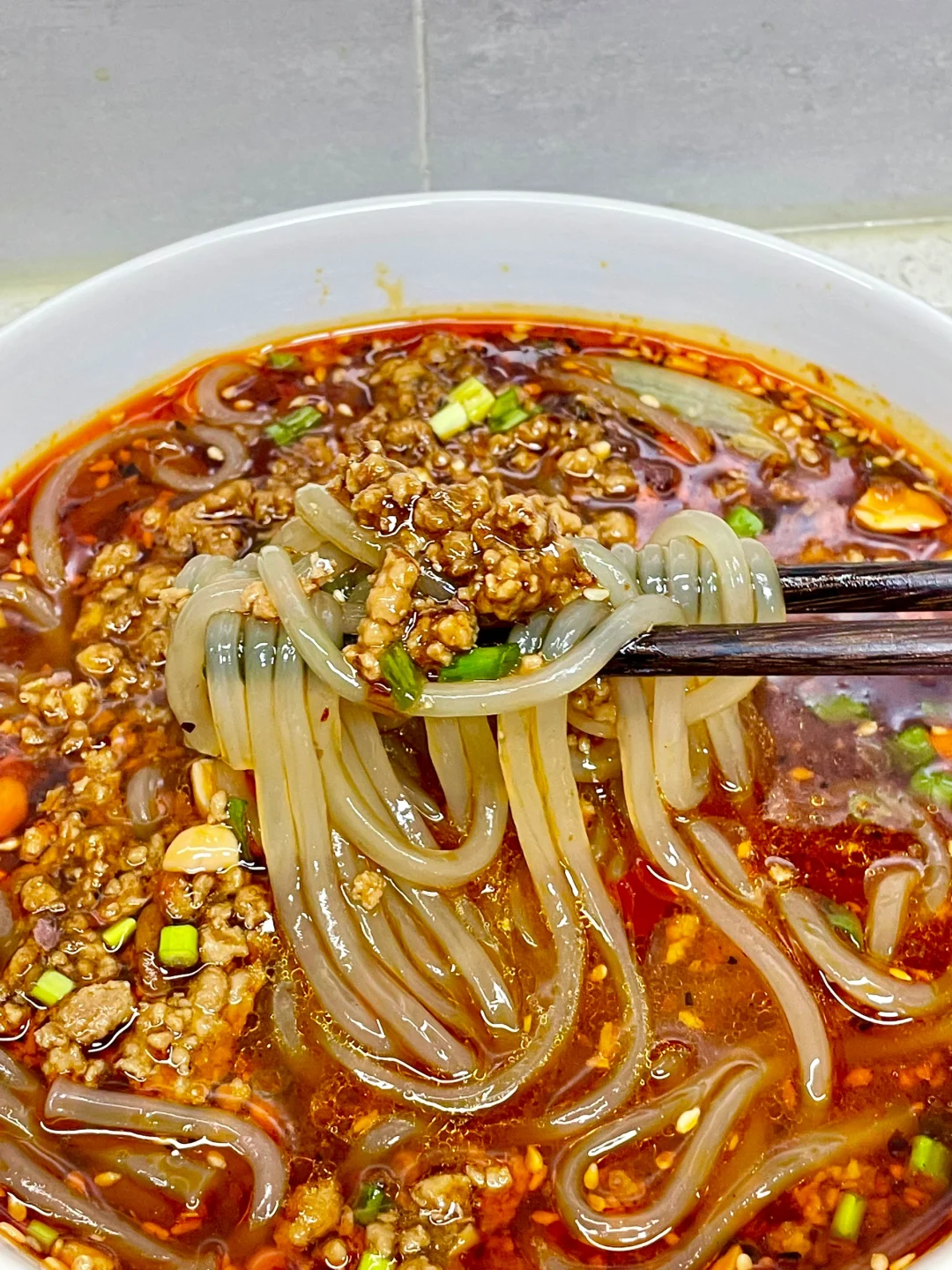酸辣粉也太好吃了,酸爽开胃,红薯粉劲道爽滑,再来上一大勺杂酱,也太过瘾了