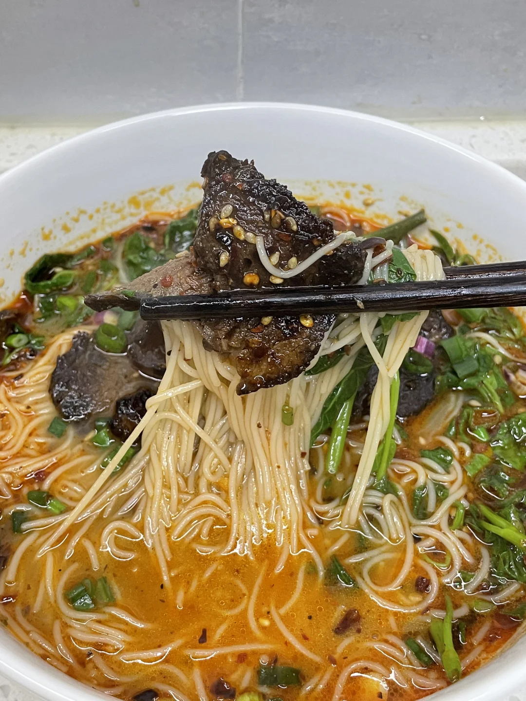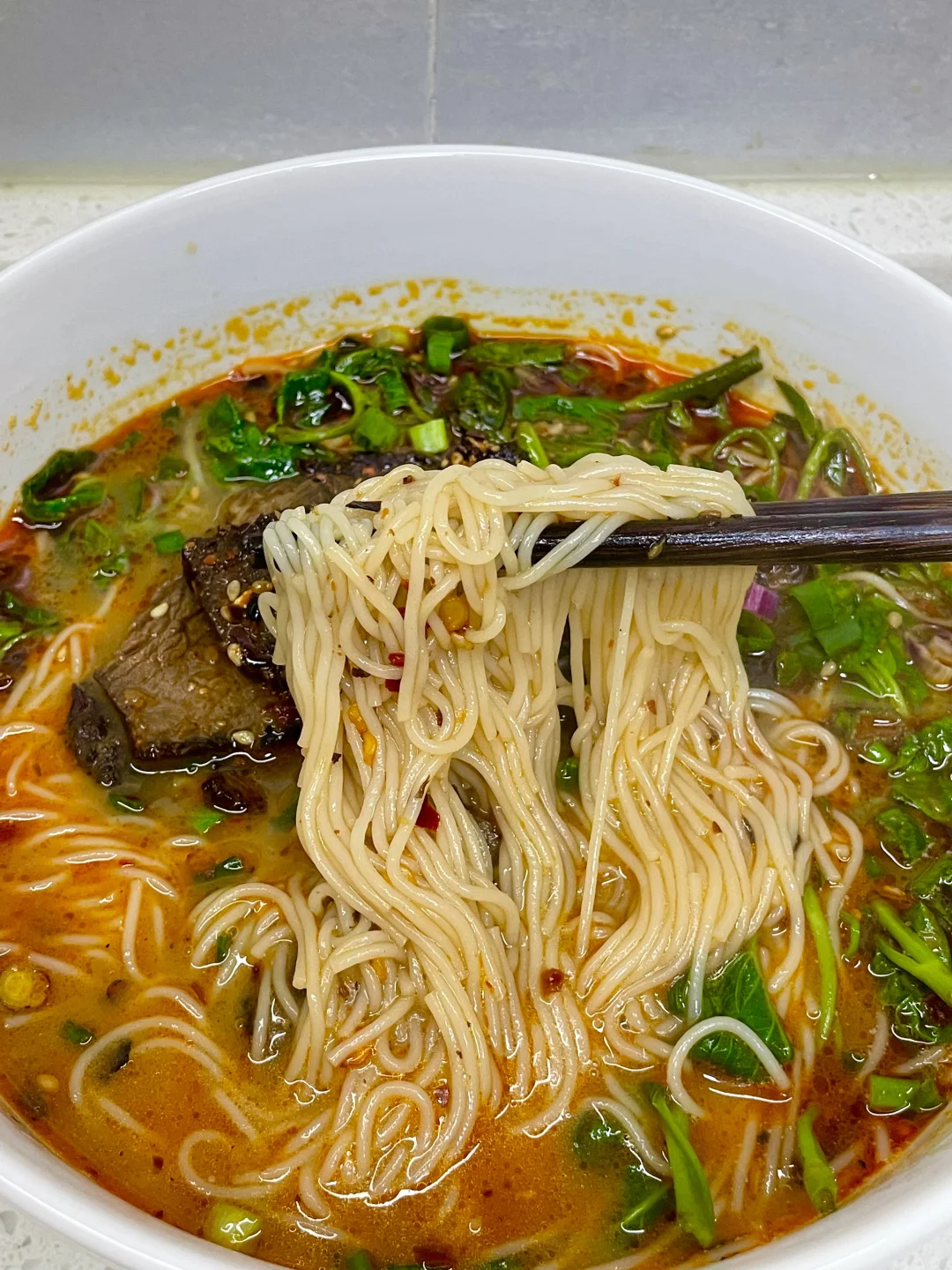 几分钟就可以搞定的香辣牛肉Q米面,一口下去香迷糊了