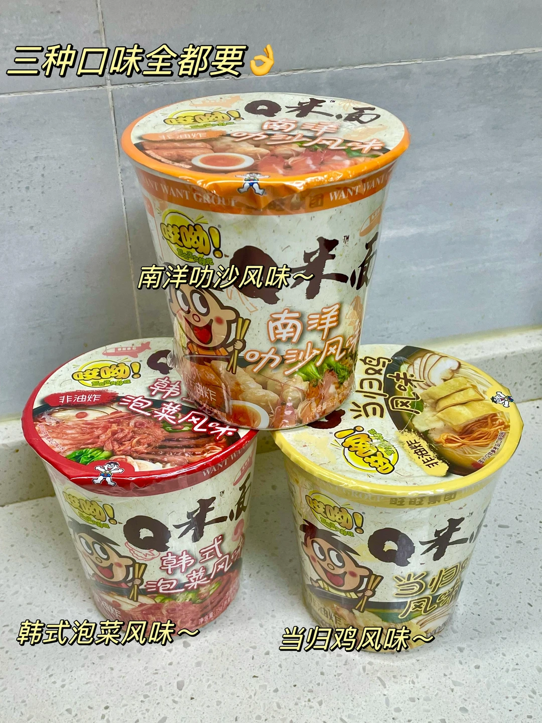 我是重度面食爱好者,很喜欢各类面食,旺旺最近也出了杯面,作为旺旺的忠实粉丝,我肯定要买来尝尝。面饼都是非油炸、0反式脂肪酸的,不用担心发胖。有三种口味,南洋叻沙风味,当归鸡和韩式泡菜风味,我都试过了,亲测好吃,除了自己DIY还可以直接用开水泡6-8分钟就可以,超级方便!