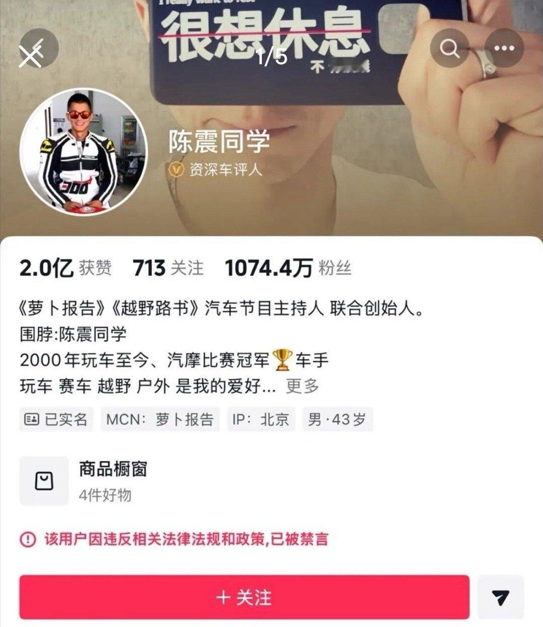 车圈大V陈震被多平台禁言,微博、抖音、快手、小红书平台显示,该用户因违反相关法律法规和政策,已被禁言。B站则显示账号已被封禁10月3日,陈震驾驶一辆劳斯莱斯闪灵在北京万寿路发生了交通事故,引发业界广泛关注。10月5日,北京交警通报事故情况称,经初步调查,陈震负事故全部责任从二环飙车少年到车评顶流,再因触碰言论红线一夜“失声”,陈震的坠落轨迹揭示了流量时代的生存法则:名气是双刃剑,当影响力膨胀与责任意识失衡时,再坚固的数字帝国也可能顷刻崩塌。这场监管、公众与商业价值的三角博弈,终将改写自媒体生态的权力边界