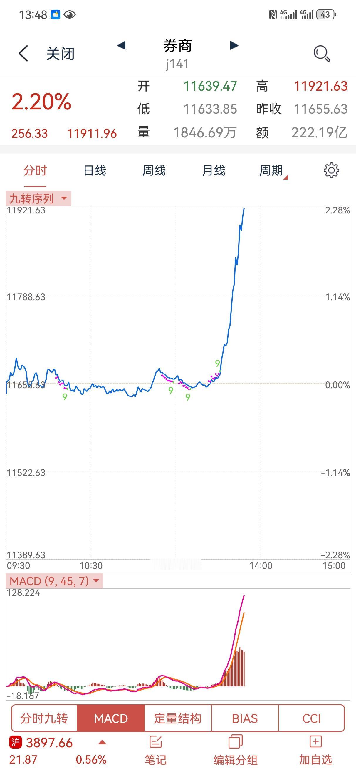 我很少盘中发贴。今天说几句吧。下午保险,券商开始出力了,券商补涨一下很正常,因为实在被打压太久了。保险板块是最容易操作的,用的钱少,效果也比较明显,曾经一段时间以来保险板块出了很多力[大笑][大笑]。不管怎么说,也比拉银行拉石油好,至少个股的活跃度会好一些,这几天流动性都快没了,整天就是那些抱团股,量化股折腾。 昨天就说了,今天涨跌都不太重要,放松心态即可,估计下周中,形势会更加明朗一点,走一步看一步吧,机会只留给有准备的人,周末愉快!