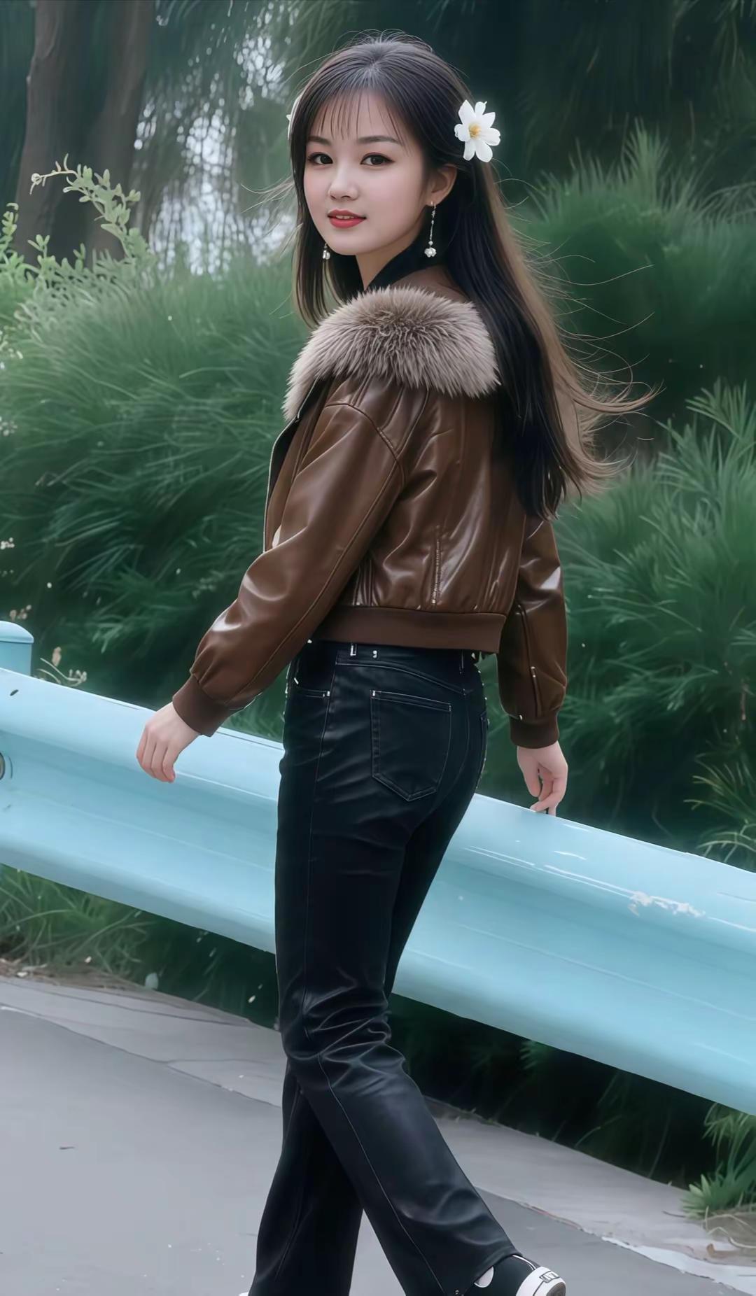 秋日公园里的时尚红衣女郎,自信微笑,尽显优雅魅力!🍂💃🏻