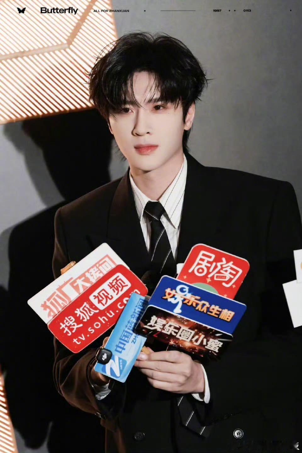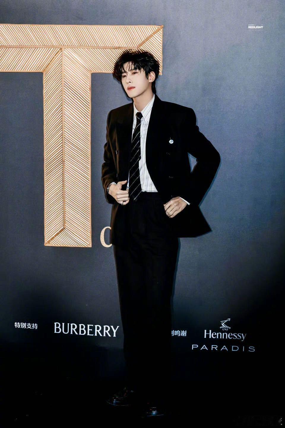 展轩黑西装条纹领带体制内感展轩T风格论坛红毯生图咱就说就这个展轩帅啊,黑西装条纹