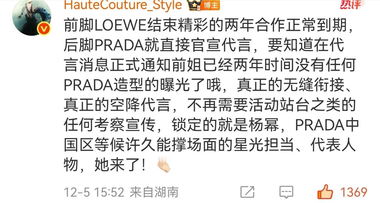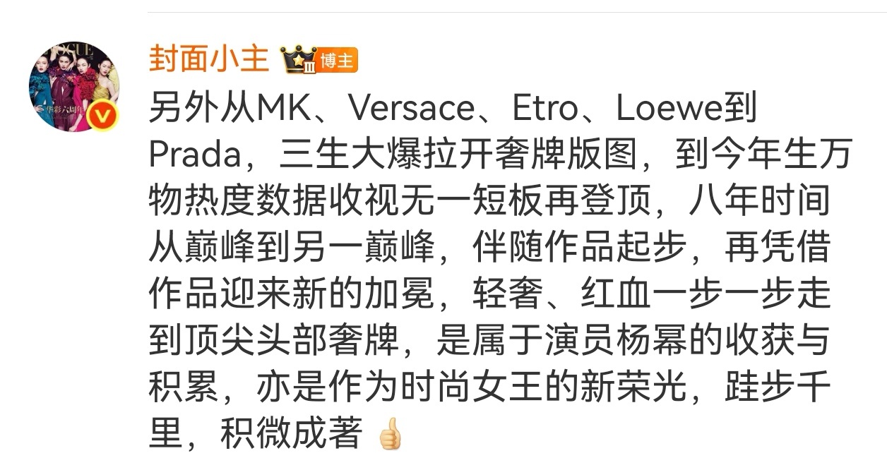 Prada官宣杨幂每次夸杨幂词穷时就会点开时尚博主的评论,直接看爽了杨幂 我都僵
