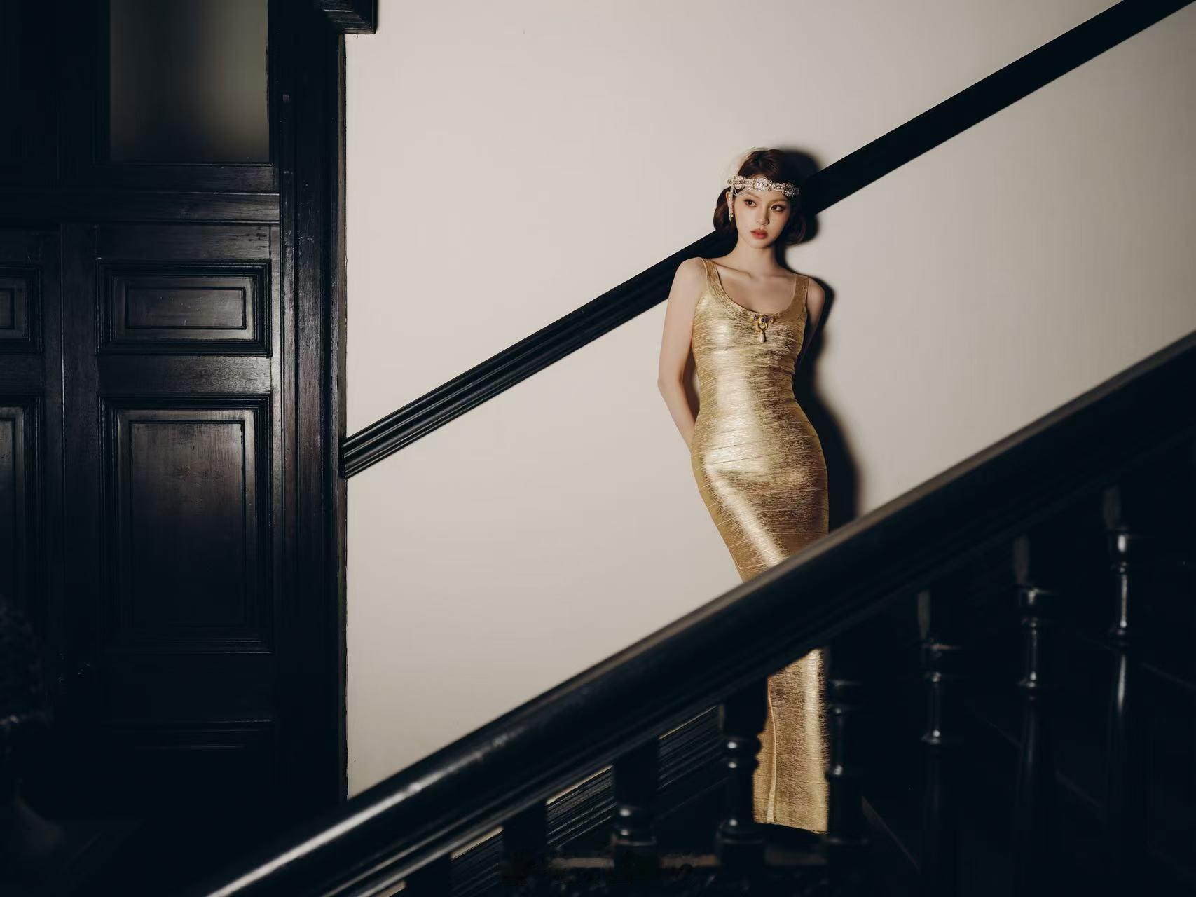 金色裙摆凸显好身材——欧阳娜娜。每日明星美图分享