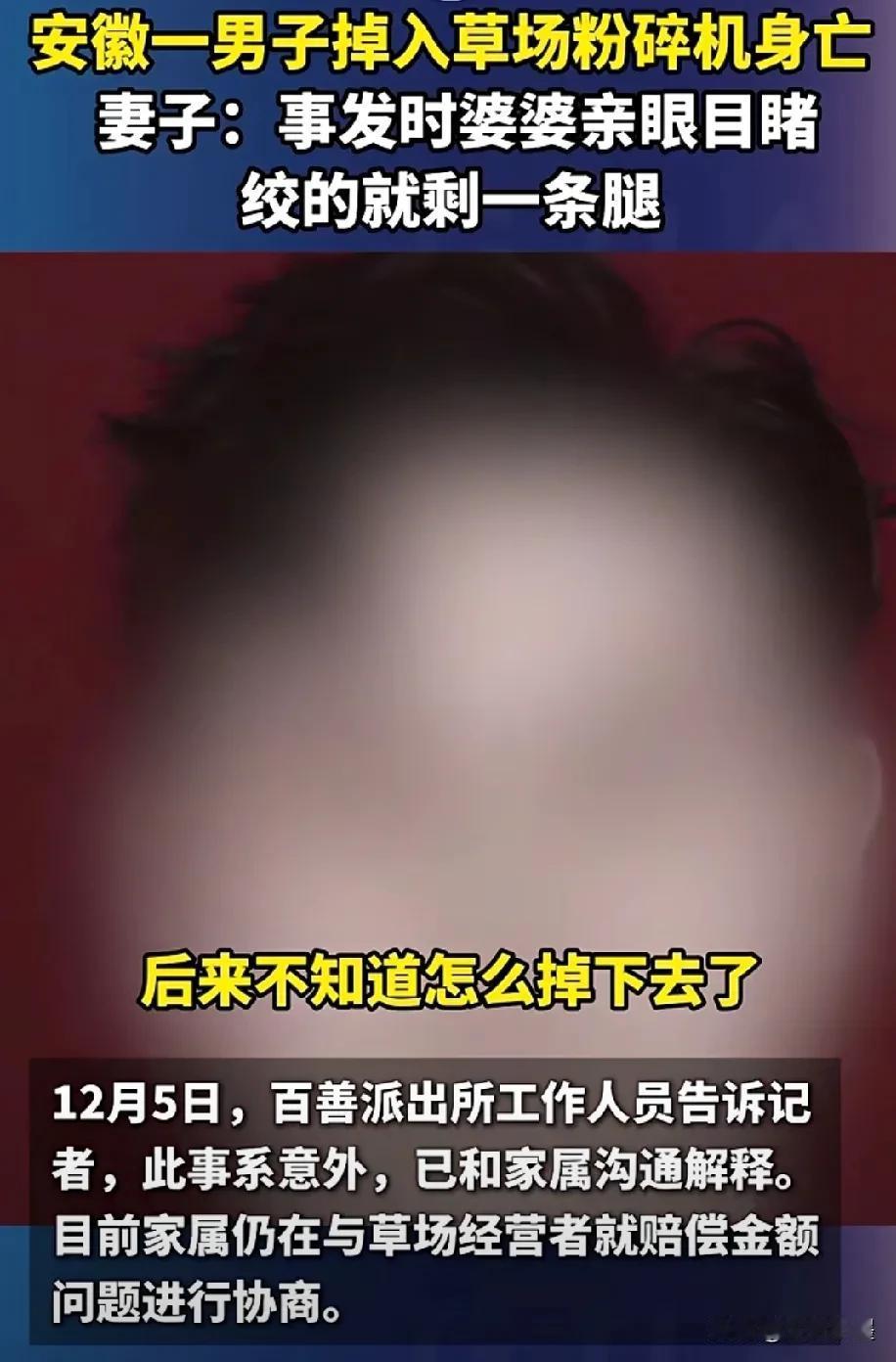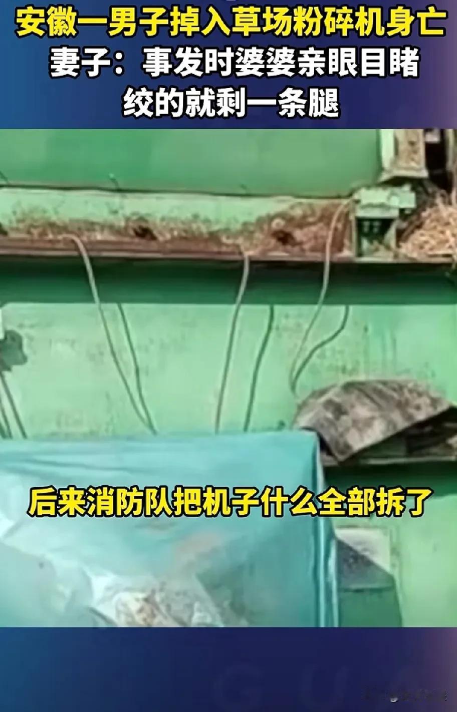 白发人送黑发人,母亲亲眼看到儿子被草场粉碎机夺走生命,悲痛欲绝! 事发前,草场的这台粉碎机突发故障停止工作了,男子上前维修🧰,导致他失去生命的原因是,他在维修时犯了大忌,一是没有断掉电闸,二是把机器遥控器带在了身上。结果不小心碰到了遥控器,机器被启动,转动的机器导致其整个人都被卷到了粉碎机里,最后整个人就剩下了一条🦵,惨不忍睹! 男人的母亲就在事故现场,亲眼看到了自己的儿子惨遭横祸,其内心该是多么的悲伤和绝望! 这件事伤害了两个家庭,一个是男人的家庭,家里的顶梁柱没了,母亲失去了儿子,妻子失去了丈夫,孩子失去了父亲;另一个是草场老板的家庭,后续高额的赔偿是避免不了的。 安全生产无小事,切记维修机器时一定要断掉电源🔌,既是为了保护自己,也是为了家人,到了这个年纪,上有老下有小,人都不是为自己而活了!