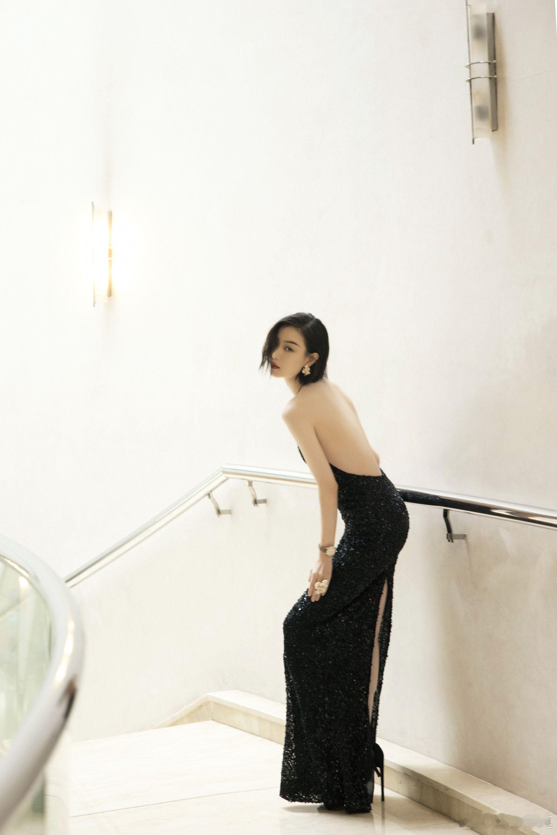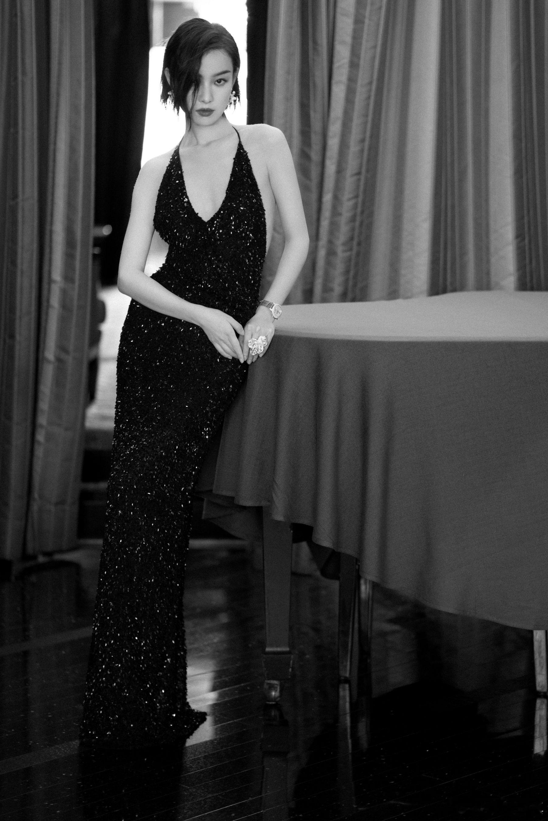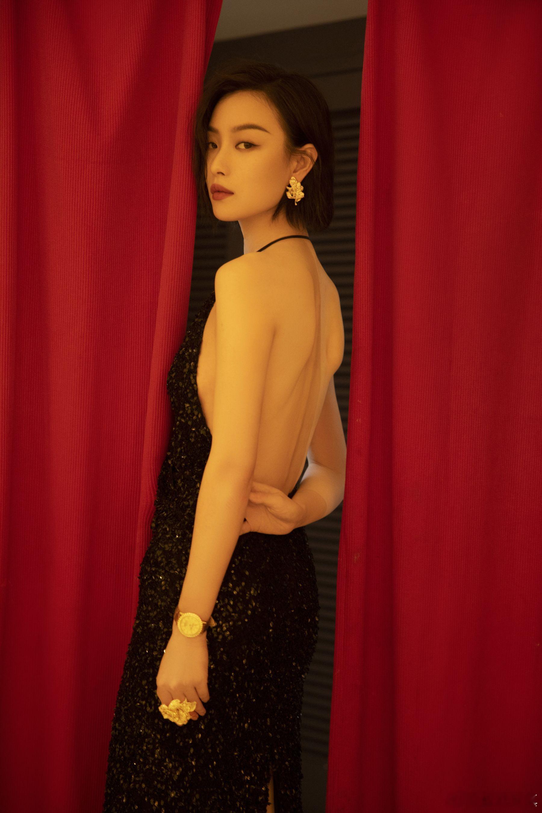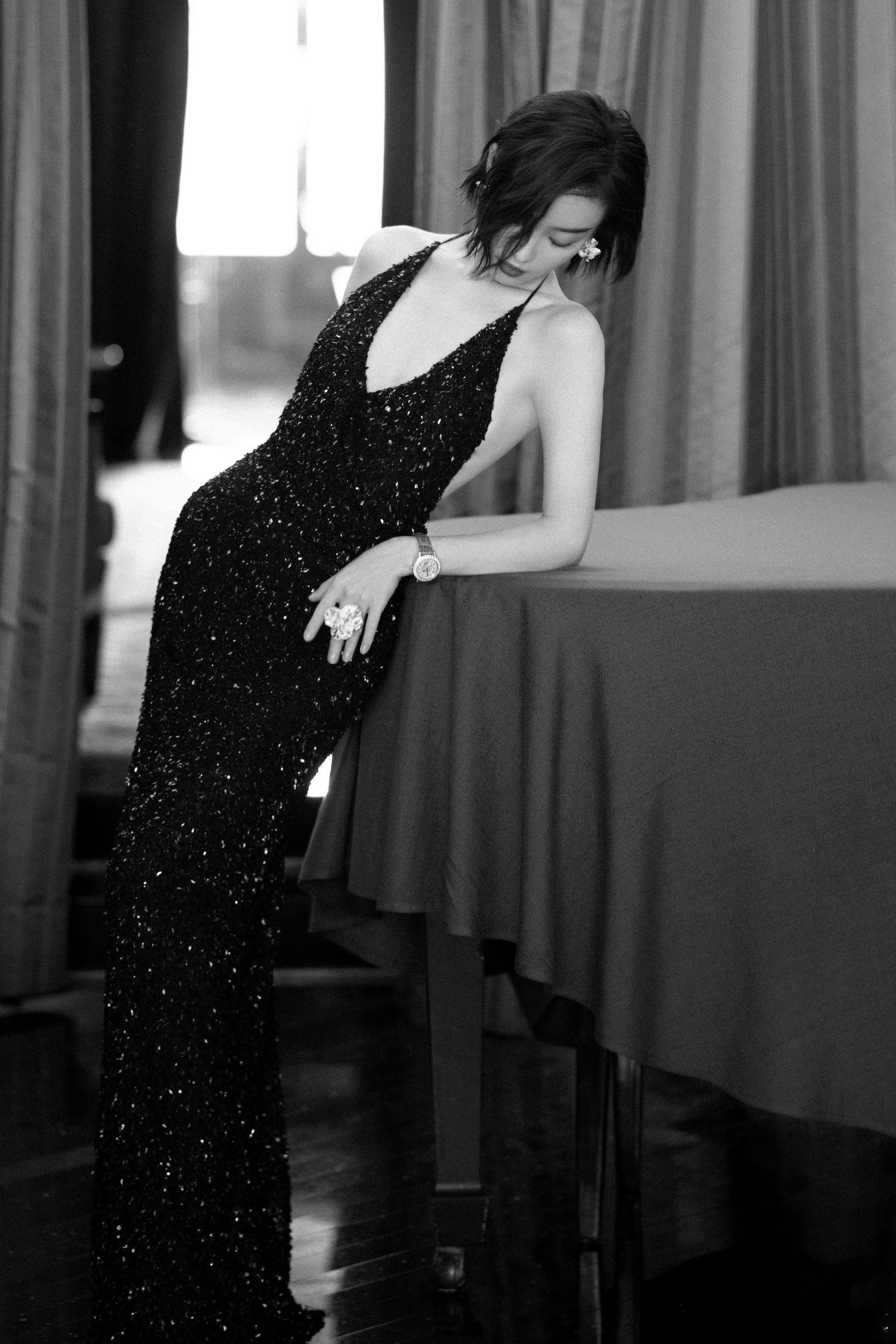 倪妮一身深V亮片修身黑裙,闪耀之余尽显复古清冷气质~2025娱乐年终盘点 非正式