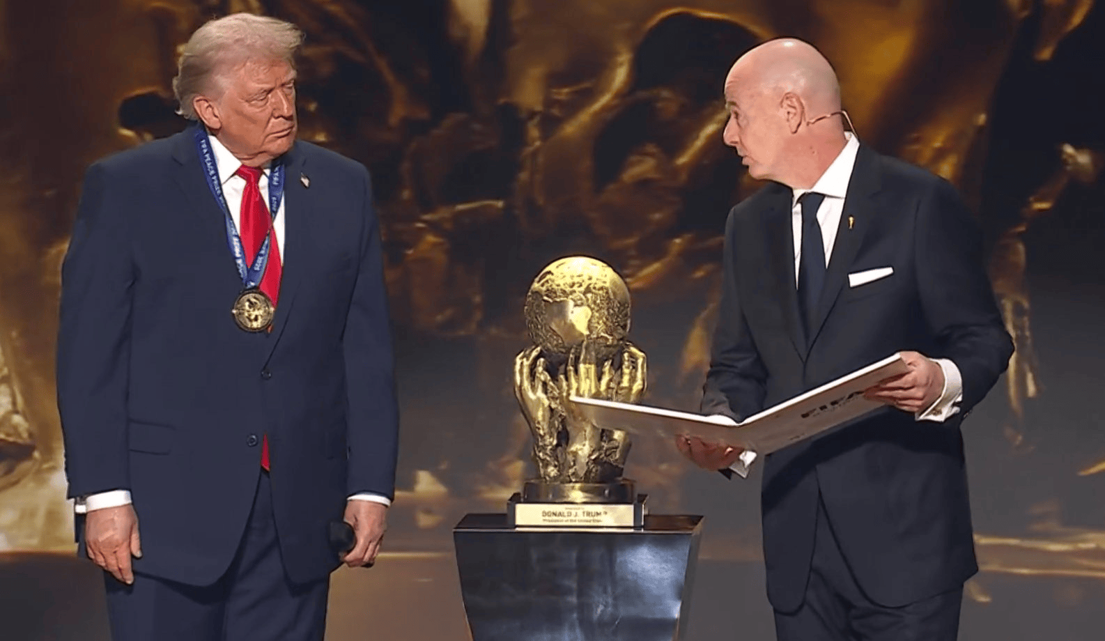 抽签仪式开始之前,因凡蒂诺为特朗普颁发FIFA和平奖