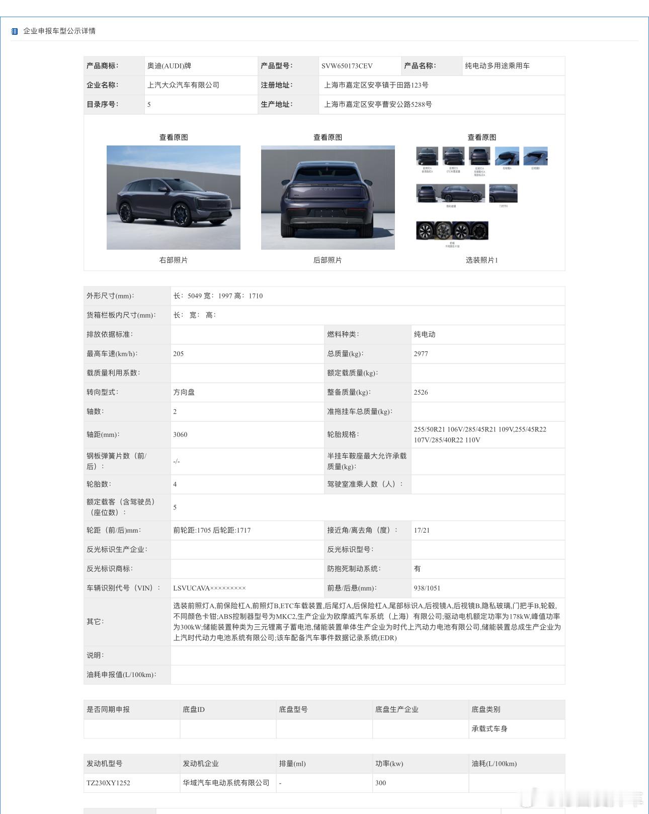 奥迪E7X申报图发布!猝不及防的一次工信部车展!车身尺寸5049x1997x17