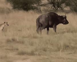 鬣狗围猎水牛,专挑屁股下嘴,一口下去水牛直接腿软。 我在纪录片里看这段,镜头晃得