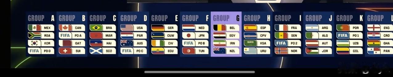 2026年美加墨世界杯抽签仪式已落下帷幕,48支参赛队(含6个附加赛待定席位)完成分组落位,附加赛席位将由欧洲附加赛(4席)和洲际附加赛(2席)胜者填补,赛事将于2026年6月11日至7月19日举行。各小组球队如下: A组:墨西哥(东道主)、韩国、南非、欧洲附加赛D区胜者 B组:加拿大(东道主)、瑞士、卡塔尔、欧洲附加赛A区胜者 C组:巴西、摩洛哥、海地、苏格兰 D组:美国(东道主)、澳大利亚、巴拉圭、欧洲附加赛C区胜者 E组:德国、厄瓜多尔、科特迪瓦、库拉索 F组:荷兰、日本、突尼斯、欧洲附加赛B区胜者 G组:比利时、伊朗、埃及、新西兰 H组:西班牙、乌拉圭、沙特、佛得角 I组:法国、塞内加尔、挪威、洲际附加赛2区胜者 J组:阿根廷、奥地利、阿尔及利亚、约旦 K组:葡萄牙、哥伦比亚、乌兹别克斯坦、洲际附加赛1区胜者 L组:英格兰、克罗地亚、巴拿马、加纳