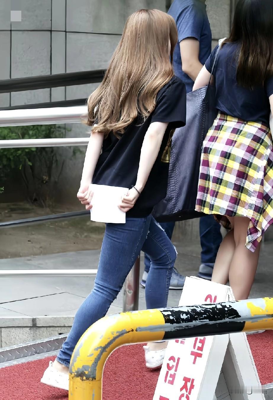 裴珠泫(Irene) 早期的她,身着简约又不失个性的穿搭,黑色印花 T 恤搭配破洞牛仔裤,自在。那一头飘逸的长发,带着青春的活力