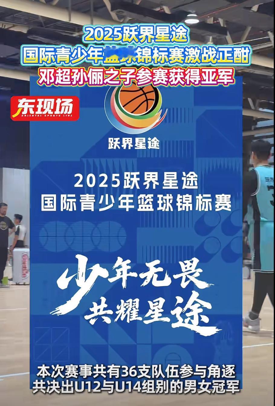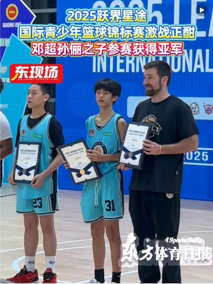 孙俪儿子等等球场惊艳亮相, 家庭悉心教育成就多面发展 孙俪与邓超的儿子一一邓涵之(小名等等), 在2025年跃界星途国际青少年篮球锦标赛中表现优异,荣获U14男子比赛亚军,球场表现备受瞩目。 除了出色的篮球实力,邓涵之在成长过程中也展现出多方面的优秀素养。他英语能力突出,可与外教顺畅交流;14岁的他身高已达1.74米,外形阳光帅气。父母孙俪与邓超不仅注重培养他的运动兴趣,也经常陪伴他参与各类活动,帮助他拓展视野、建立自信。 孙俪与邓超的教育方式一直备受认可。他们重视培养孩子的兴趣爱好与品德修养,致力于营造良好的成长环境。在父母的悉心引导与陪伴下,邓涵之不仅在体育方面取得成绩,更在生活中表现出良好的教养与积极向上的心态。夫妻二人也常借助身边资源,如邀请姚明等友人给予孩子指导,助力其全面发展。 相信在这样充满爱与支持的家庭环境中,邓涵之将继续成长,在未来绽放更多光彩。
