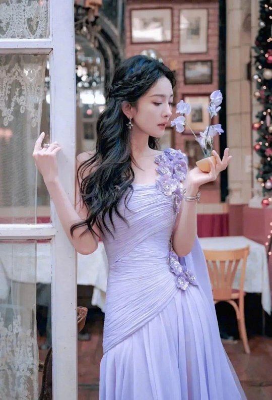 杨幂,魅力纱裙美腿妆造,这眼神太迷人了吧