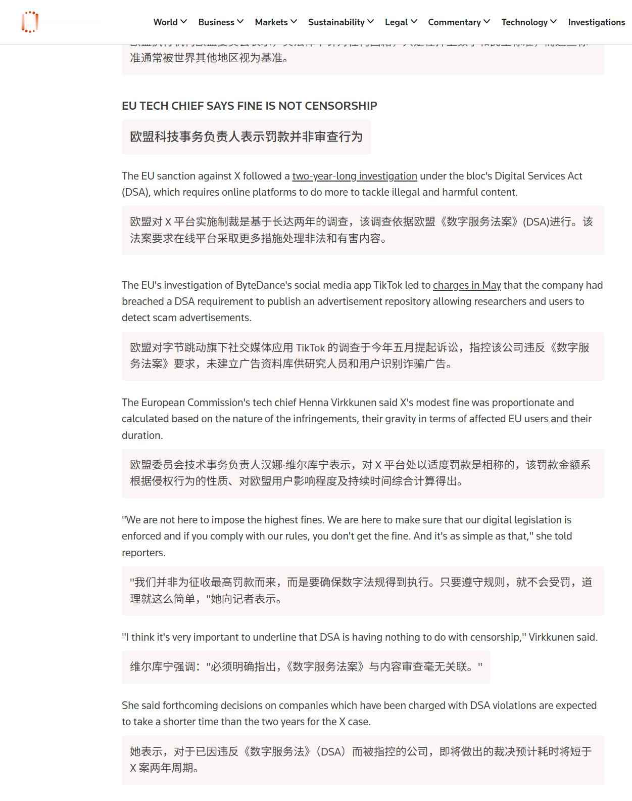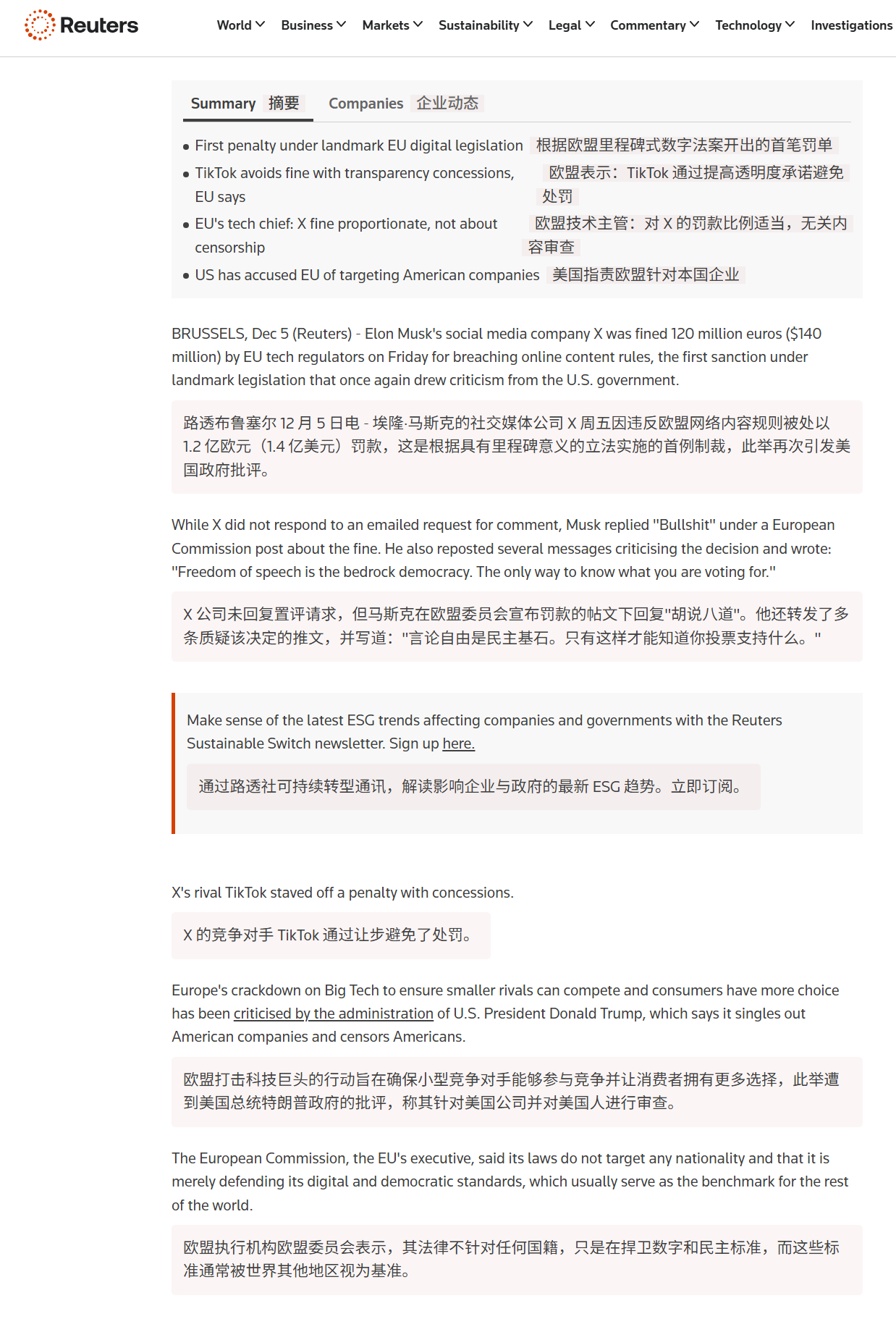 🔻鲁比奥公开称:“欧盟委员会 1.4 亿美元的罚款不仅是对 X 的攻击,更是外国政府对所有美国科技平台及美国人民的攻击。美国人遭受网络审查的日子结束了。”🔻via 路透社🔻欧洲坚强一点,不要怕,跟它干。热点现场 海外新鲜事