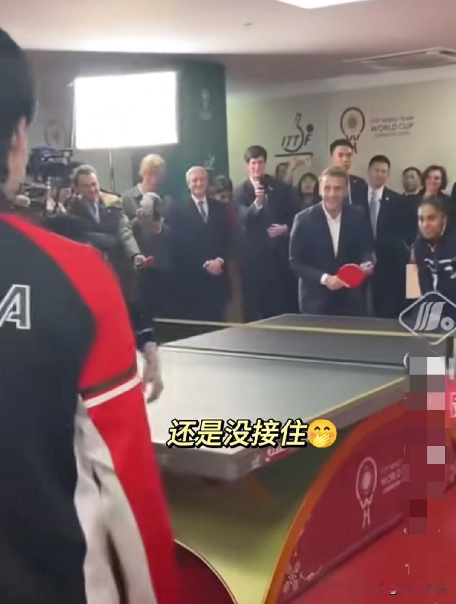 马克龙也是打上混双了,对面还是王楚钦和孙颖莎,这个画面真的很暖啊。 马克龙也来
