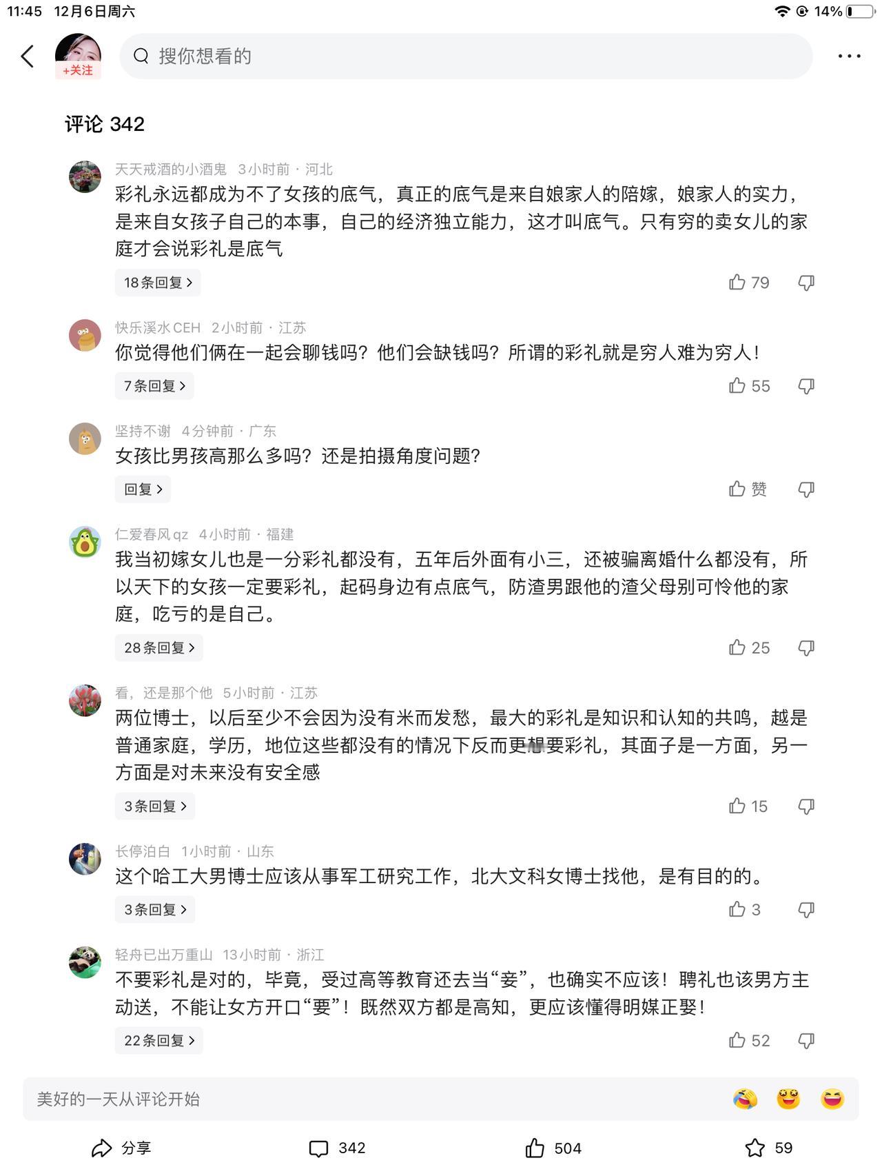 不要彩礼!霸屏了! 一个北大女博士,一个哈工大男博士,结婚,不要一分钱彩礼。 要不要彩礼,不要彩礼只是人家不需要父母的再次托举了!两个博士,还愁没工作吗?两个人一个月往少说四万吧!吃啥喝啥都够了!这辈子不用为钱发愁了。 他的彩礼,是一个从小到大优秀的自己。她的嫁妆是一个一路开挂上北大的自己。这后面,是来自双方父母足够优秀的基因。是一切的底气。这辈子,他们的日子是没什么需要犯愁的。但人怎么可以过的这么没有忧愁烦恼。哎,赐他们一个只能上末流985的孩子吧!不然他们整天太开心了!